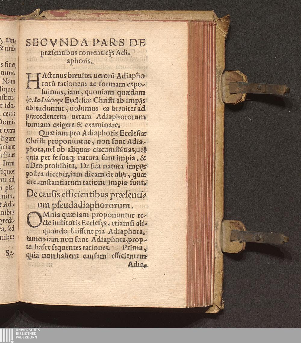 Secvnda Pars De præsentibus comenticijs Adiaphoris.
