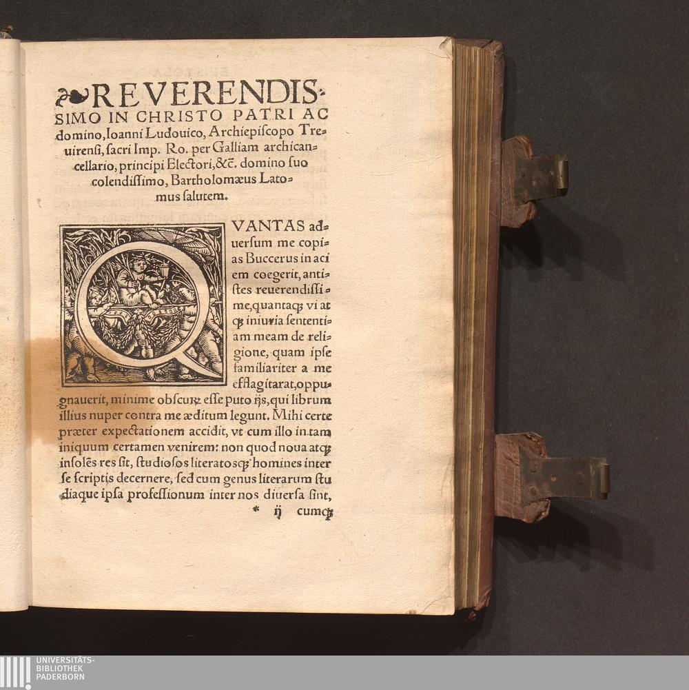 Reverendissimo In Christo Patri Ac domino, Ioanni Ludouico, Archiepiscopo Treuirensi, sacri Imp. Ro. per Galliam archicancellario, principi Electori, &c. domino suo colendissimo, Bartholomæus Latomus salutem.