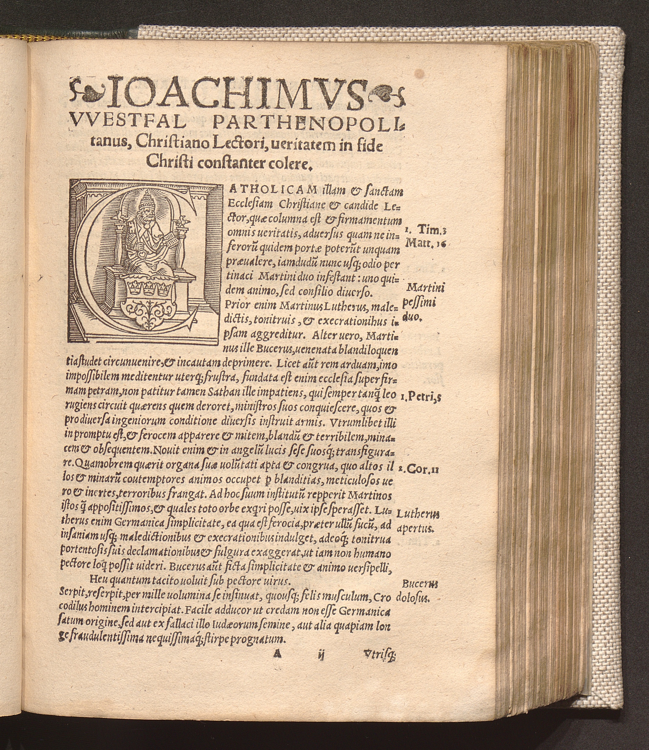 Ivdici-||vm Cleri Et || Vniversitatis Coloniensis De || Doctrina & uocatione Martini Buceri || ad Bonnam / [Ioachimvs VVestfal Parthenopolitanus ...]