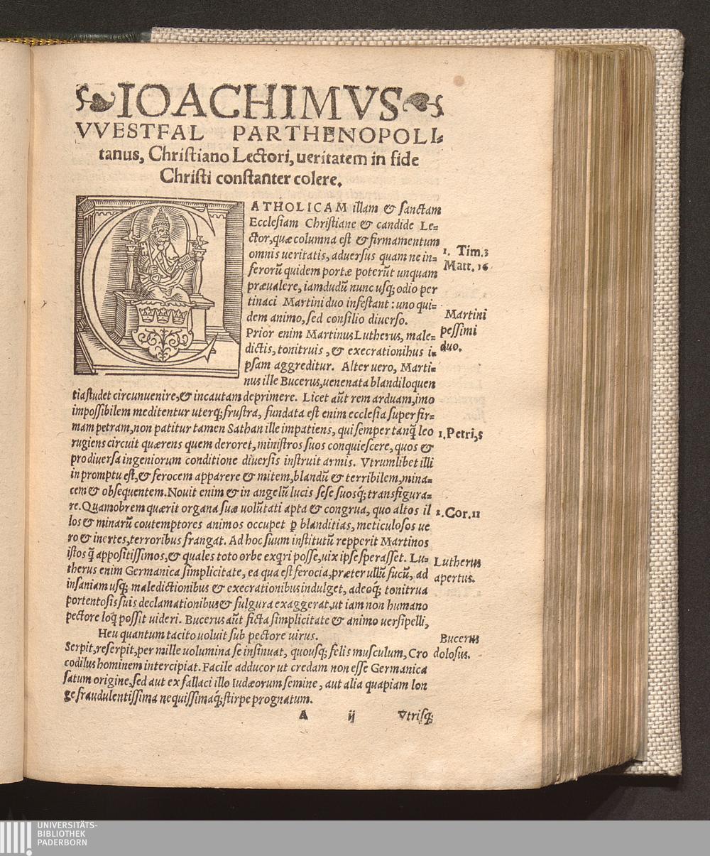 Ioachimvs VVestfal Parthenopolitanus, Christiano Lectori, ueritatem in fide Christi constanter colere.