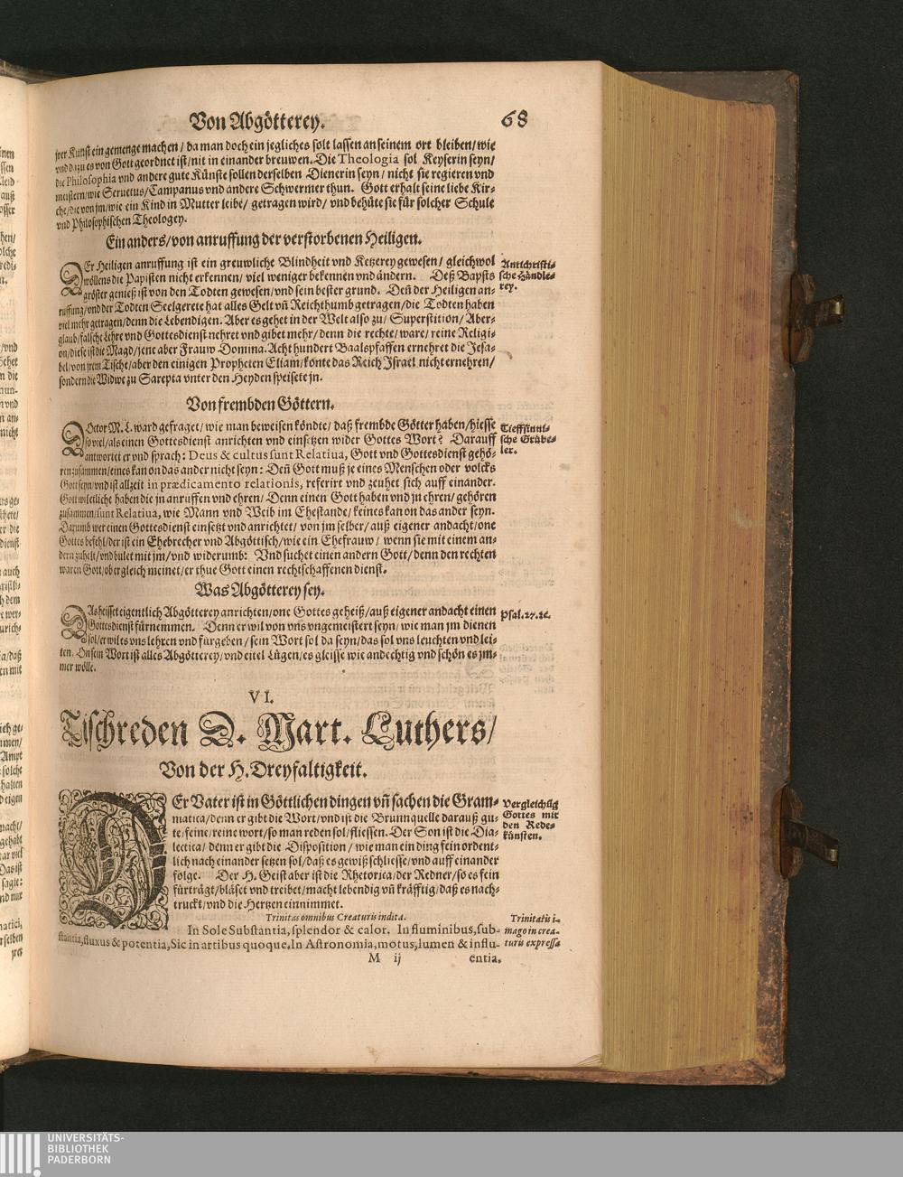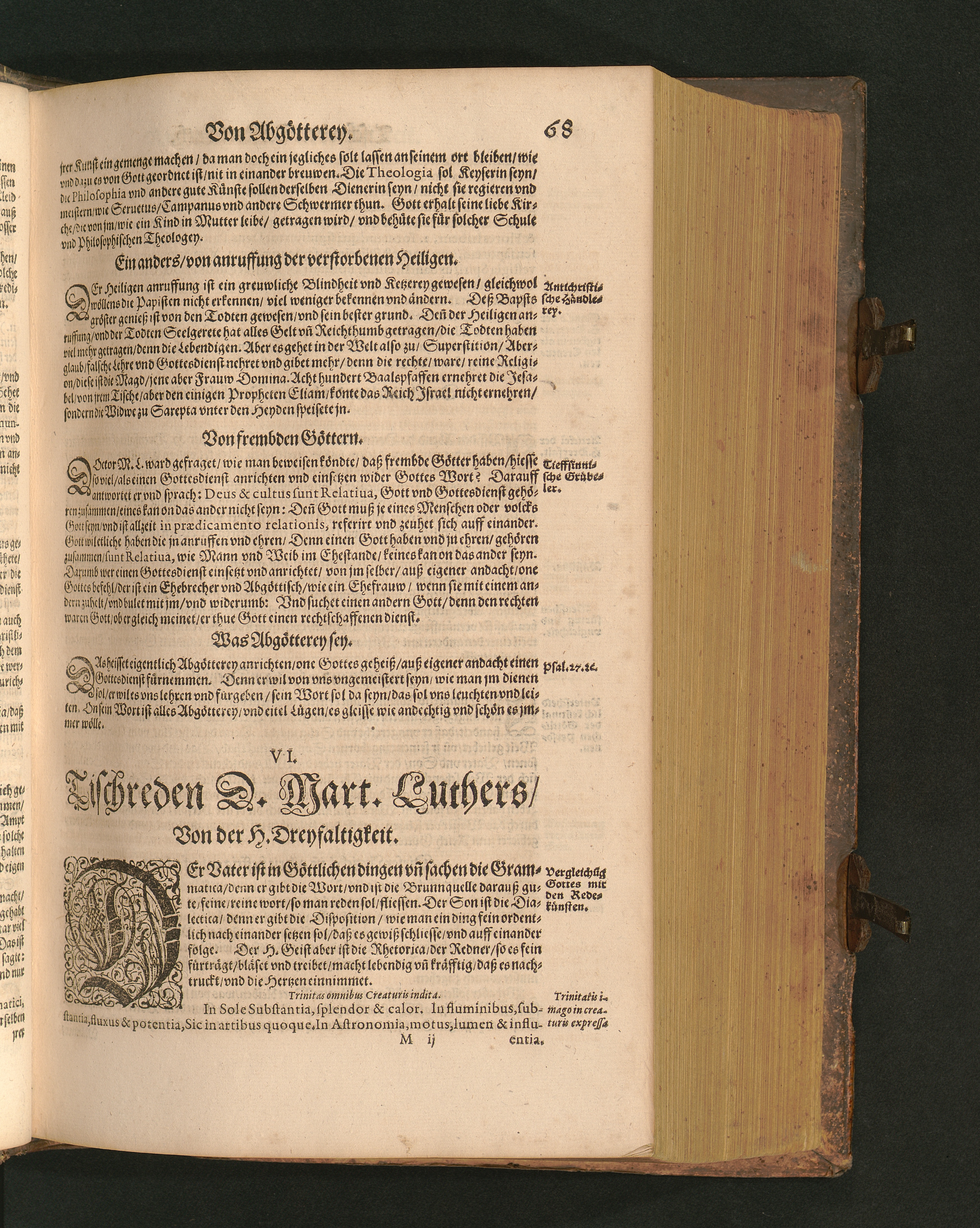 COLLOQVIA || Oder || Tischreden Do=||ctor Martini Lutheri/ : so er in vielen || Jaren/ die Zeit seines Lebens/ gegen Gelehrten Leuthen/ Auch || frembden Gesten vnd seinen Tischgesellen geführet. Darinn von allen Artickeln || vnser Religion/ Auch von hohen Stücken/ Fragen vnd Antwort: Item/|| viel mercklichen Historijs/ vnd sonst von allerley Lehre/ Trost/ Raht/|| vnnd vnterricht/ zu finden.|| / Anfenglichs von M. Anthonio Lauterbach zusammen getragen/ Hernacher in gewisse Locos || Communes verfasset/ vnd auß viel anderer Gelehrter Leute Collectaneis gemehret.|| Durch Johannem Aurifabern.||