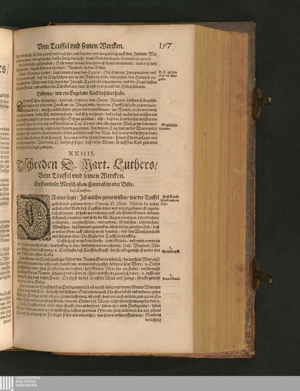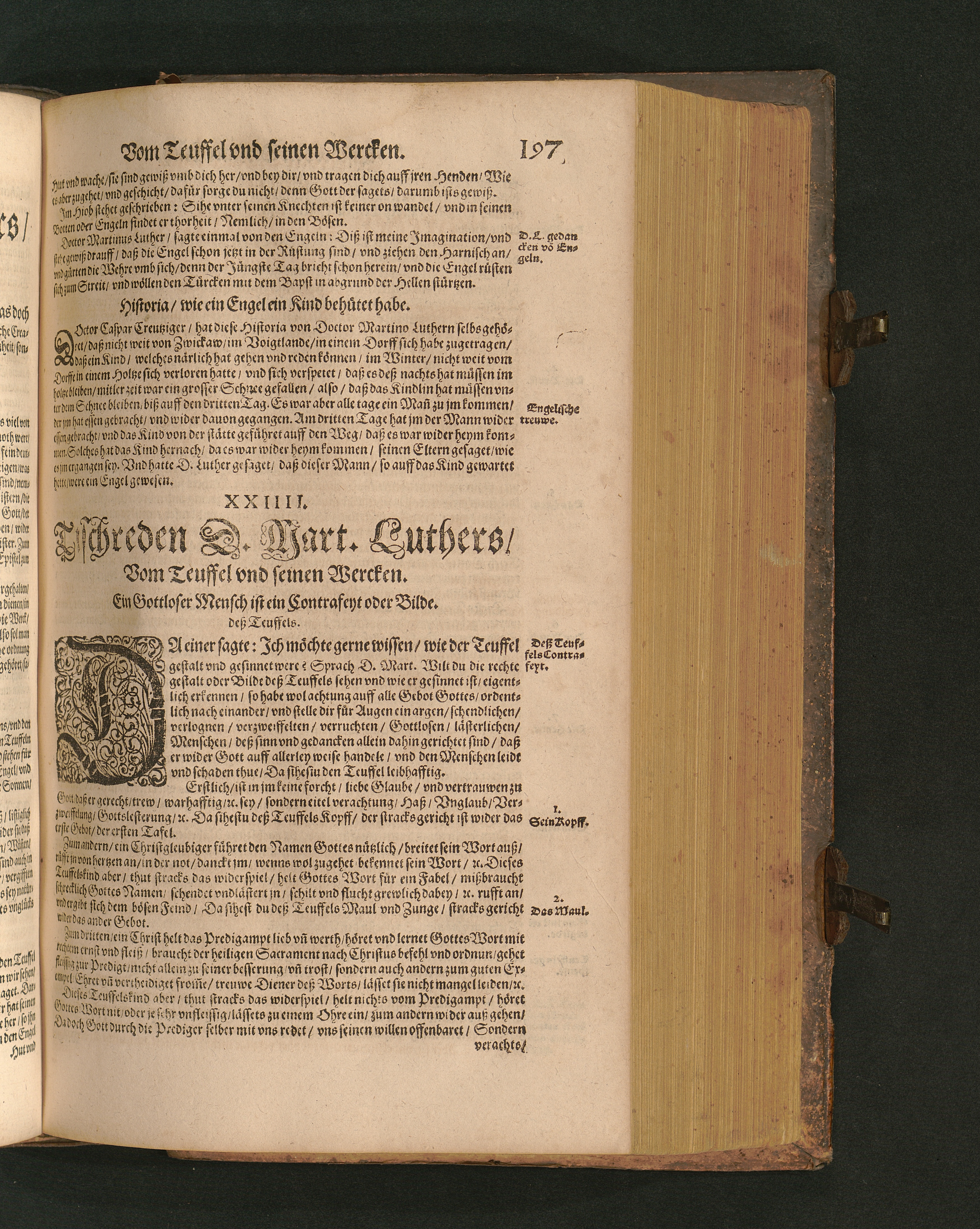 COLLOQVIA || Oder || Tischreden Do=||ctor Martini Lutheri/ : so er in vielen || Jaren/ die Zeit seines Lebens/ gegen Gelehrten Leuthen/ Auch || frembden Gesten vnd seinen Tischgesellen geführet. Darinn von allen Artickeln || vnser Religion/ Auch von hohen Stücken/ Fragen vnd Antwort: Item/|| viel mercklichen Historijs/ vnd sonst von allerley Lehre/ Trost/ Raht/|| vnnd vnterricht/ zu finden.|| / Anfenglichs von M. Anthonio Lauterbach zusammen getragen/ Hernacher in gewisse Locos || Communes verfasset/ vnd auß viel anderer Gelehrter Leute Collectaneis gemehret.|| Durch Johannem Aurifabern.||