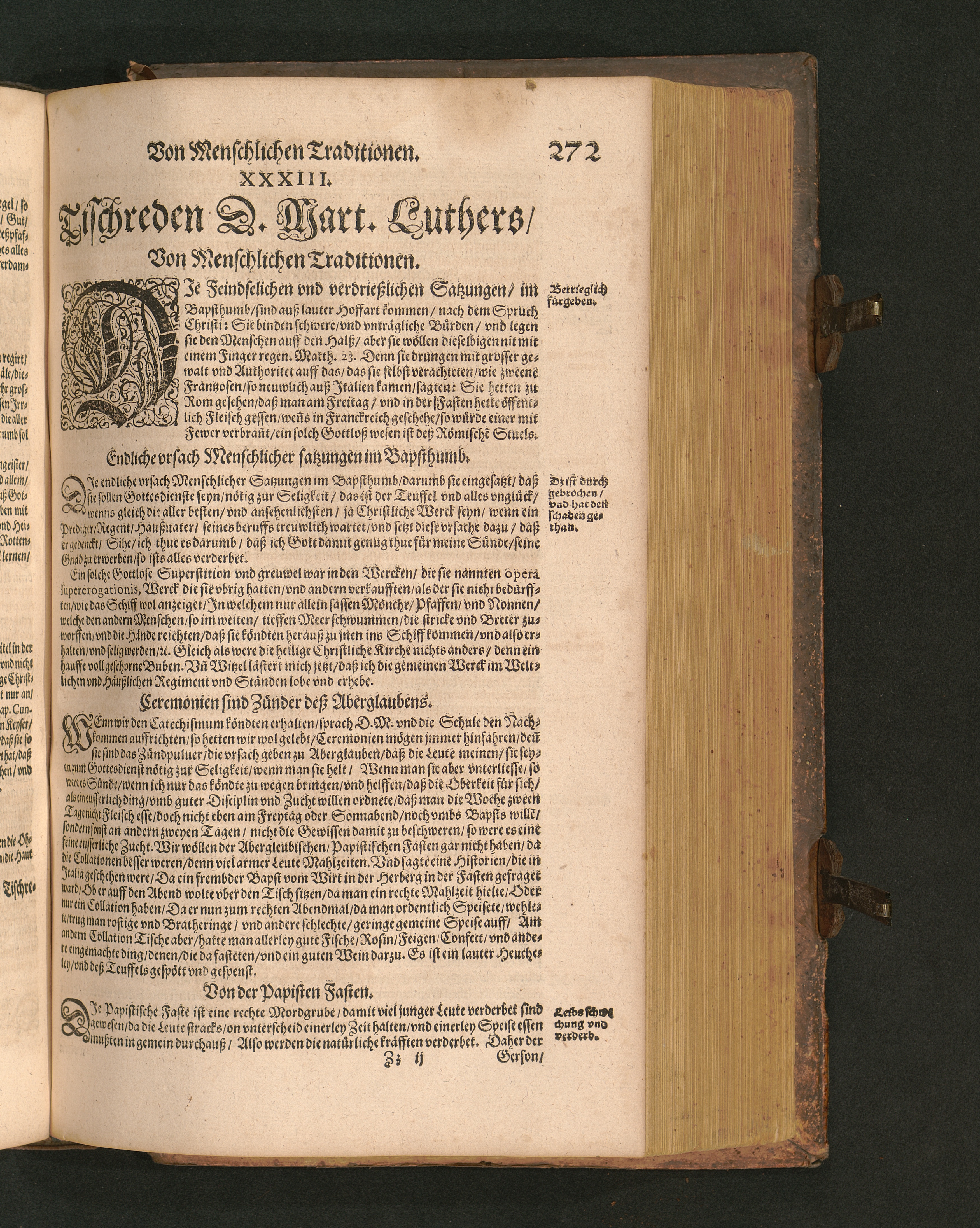 COLLOQVIA || Oder || Tischreden Do=||ctor Martini Lutheri/ : so er in vielen || Jaren/ die Zeit seines Lebens/ gegen Gelehrten Leuthen/ Auch || frembden Gesten vnd seinen Tischgesellen geführet. Darinn von allen Artickeln || vnser Religion/ Auch von hohen Stücken/ Fragen vnd Antwort: Item/|| viel mercklichen Historijs/ vnd sonst von allerley Lehre/ Trost/ Raht/|| vnnd vnterricht/ zu finden.|| / Anfenglichs von M. Anthonio Lauterbach zusammen getragen/ Hernacher in gewisse Locos || Communes verfasset/ vnd auß viel anderer Gelehrter Leute Collectaneis gemehret.|| Durch Johannem Aurifabern.||