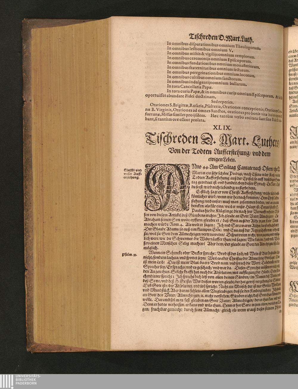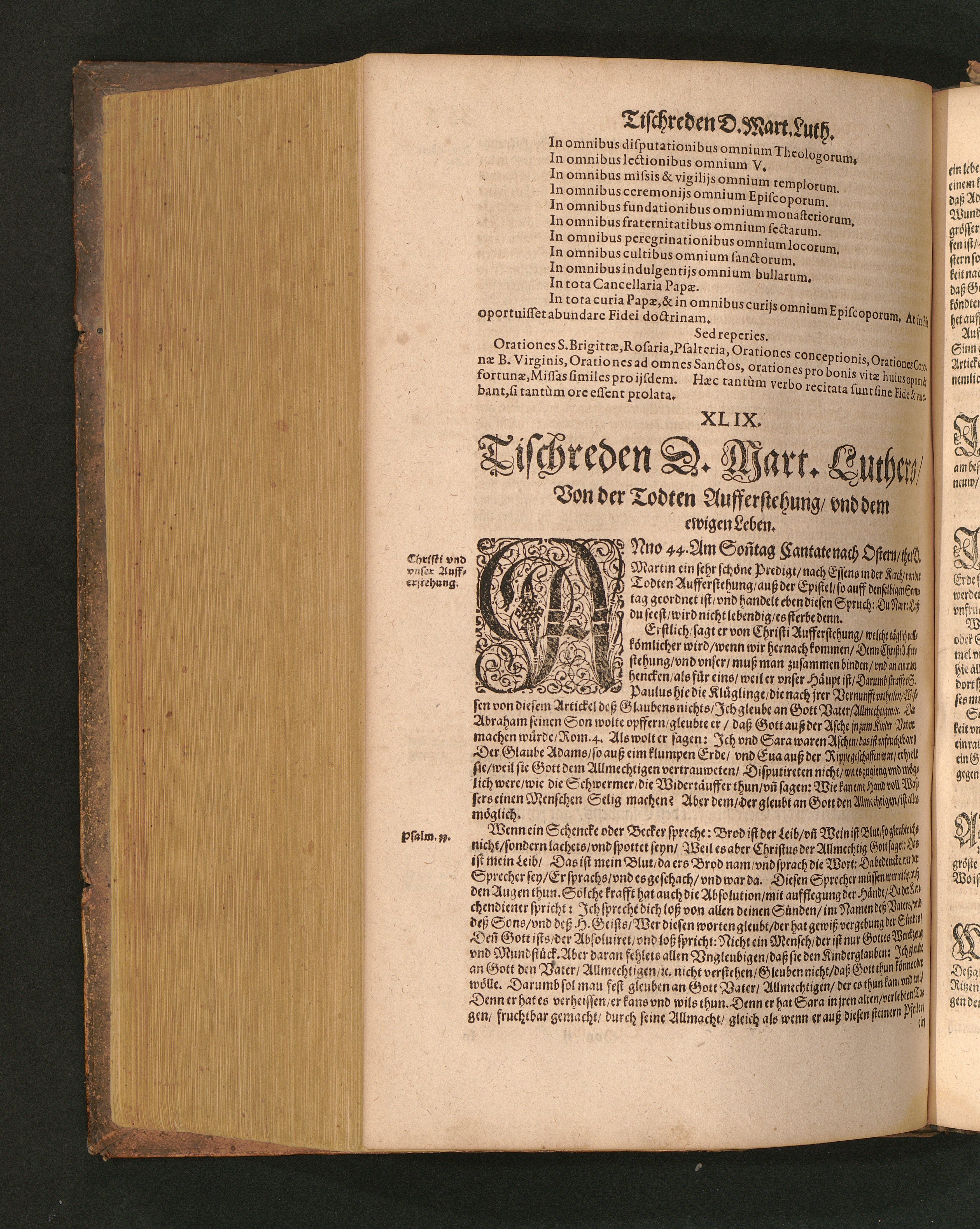 COLLOQVIA || Oder || Tischreden Do=||ctor Martini Lutheri/ : so er in vielen || Jaren/ die Zeit seines Lebens/ gegen Gelehrten Leuthen/ Auch || frembden Gesten vnd seinen Tischgesellen geführet. Darinn von allen Artickeln || vnser Religion/ Auch von hohen Stücken/ Fragen vnd Antwort: Item/|| viel mercklichen Historijs/ vnd sonst von allerley Lehre/ Trost/ Raht/|| vnnd vnterricht/ zu finden.|| / Anfenglichs von M. Anthonio Lauterbach zusammen getragen/ Hernacher in gewisse Locos || Communes verfasset/ vnd auß viel anderer Gelehrter Leute Collectaneis gemehret.|| Durch Johannem Aurifabern.||