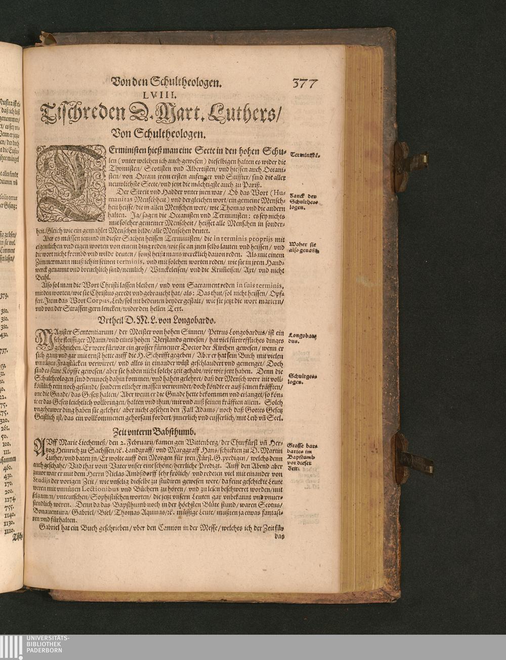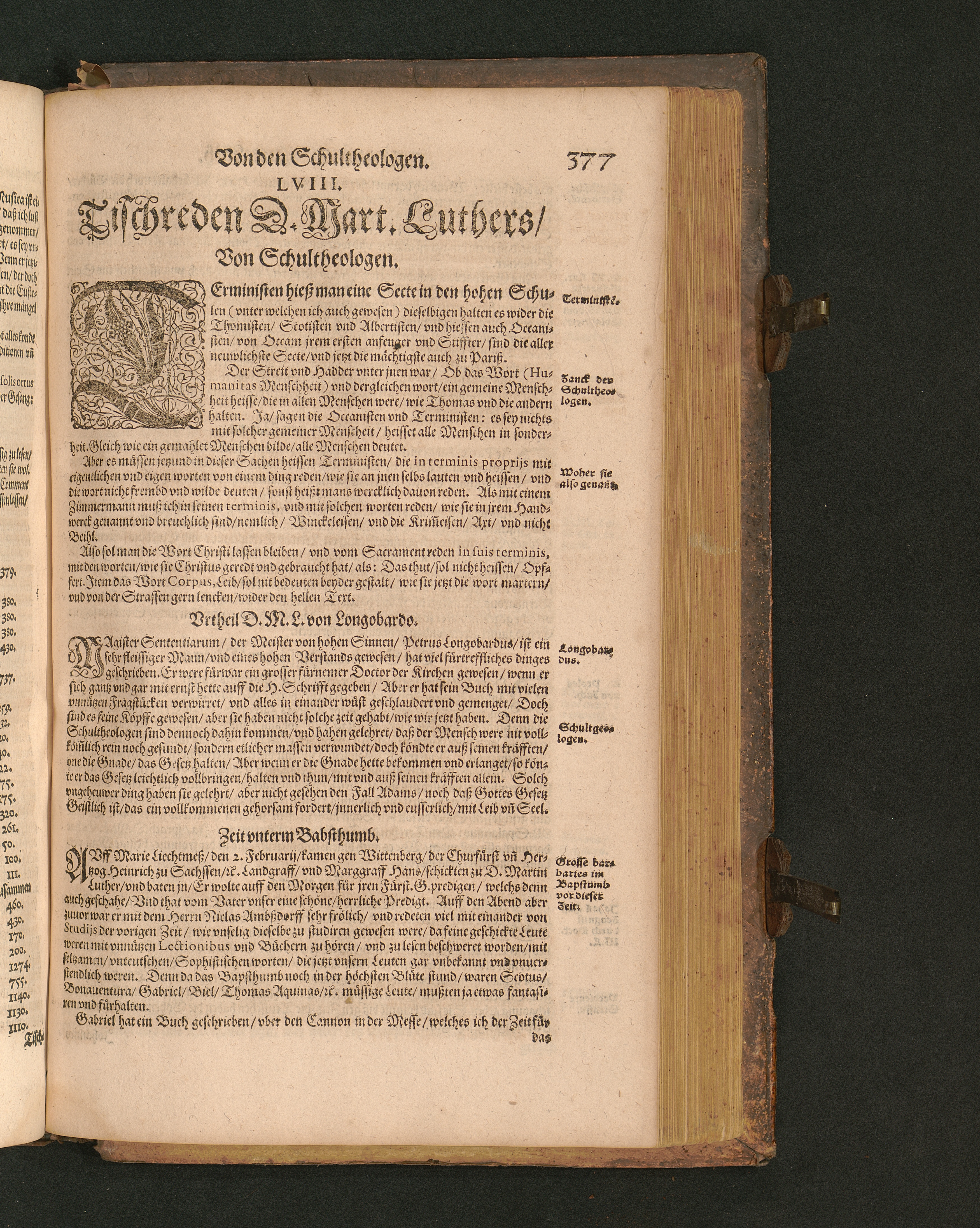 COLLOQVIA || Oder || Tischreden Do=||ctor Martini Lutheri/ : so er in vielen || Jaren/ die Zeit seines Lebens/ gegen Gelehrten Leuthen/ Auch || frembden Gesten vnd seinen Tischgesellen geführet. Darinn von allen Artickeln || vnser Religion/ Auch von hohen Stücken/ Fragen vnd Antwort: Item/|| viel mercklichen Historijs/ vnd sonst von allerley Lehre/ Trost/ Raht/|| vnnd vnterricht/ zu finden.|| / Anfenglichs von M. Anthonio Lauterbach zusammen getragen/ Hernacher in gewisse Locos || Communes verfasset/ vnd auß viel anderer Gelehrter Leute Collectaneis gemehret.|| Durch Johannem Aurifabern.||