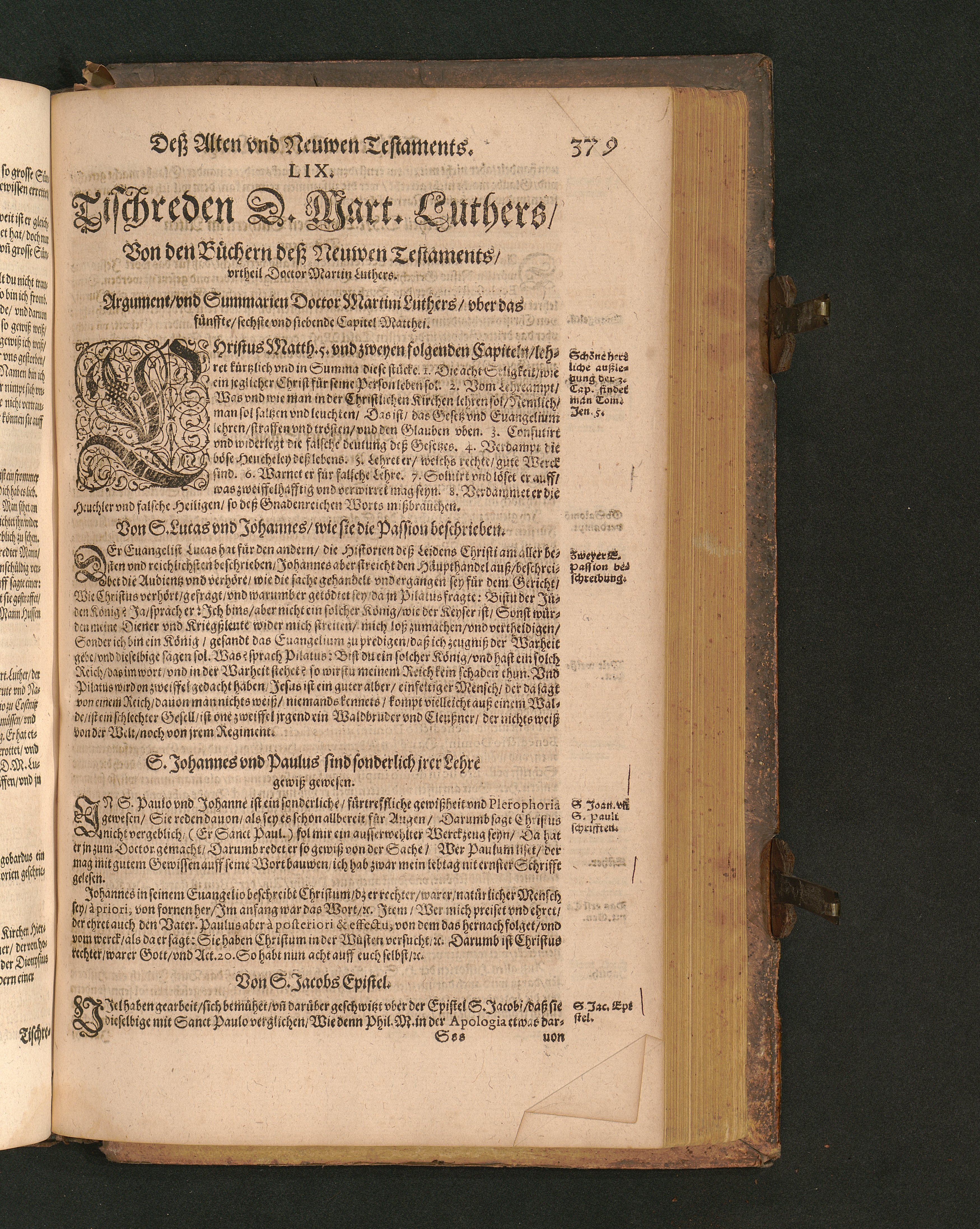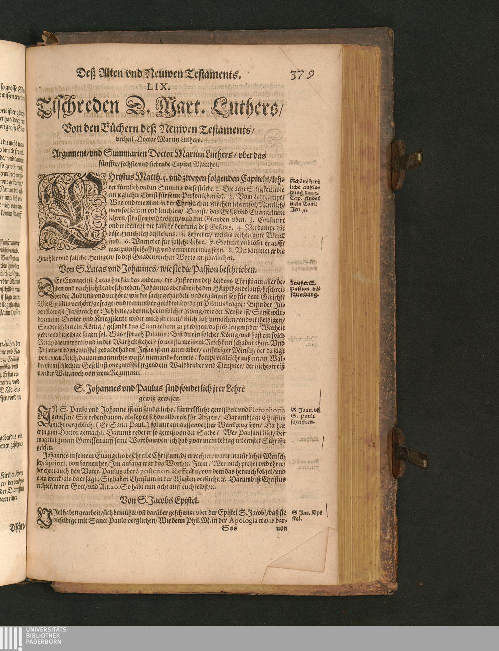 COLLOQVIA || Oder || Tischreden Do=||ctor Martini Lutheri/ : so er in vielen || Jaren/ die Zeit seines Lebens/ gegen Gelehrten Leuthen/ Auch || frembden Gesten vnd seinen Tischgesellen geführet. Darinn von allen Artickeln || vnser Religion/ Auch von hohen Stücken/ Fragen vnd Antwort: Item/|| viel mercklichen Historijs/ vnd sonst von allerley Lehre/ Trost/ Raht/|| vnnd vnterricht/ zu finden.|| / Anfenglichs von M. Anthonio Lauterbach zusammen getragen/ Hernacher in gewisse Locos || Communes verfasset/ vnd auß viel anderer Gelehrter Leute Collectaneis gemehret.|| Durch Johannem Aurifabern.||