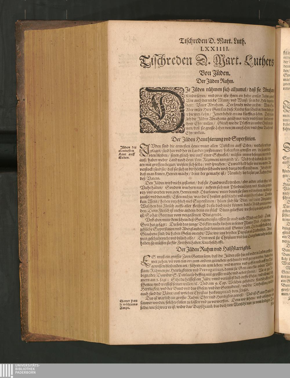 COLLOQVIA || Oder || Tischreden Do=||ctor Martini Lutheri/ : so er in vielen || Jaren/ die Zeit seines Lebens/ gegen Gelehrten Leuthen/ Auch || frembden Gesten vnd seinen Tischgesellen geführet. Darinn von allen Artickeln || vnser Religion/ Auch von hohen Stücken/ Fragen vnd Antwort: Item/|| viel mercklichen Historijs/ vnd sonst von allerley Lehre/ Trost/ Raht/|| vnnd vnterricht/ zu finden.|| / Anfenglichs von M. Anthonio Lauterbach zusammen getragen/ Hernacher in gewisse Locos || Communes verfasset/ vnd auß viel anderer Gelehrter Leute Collectaneis gemehret.|| Durch Johannem Aurifabern.||