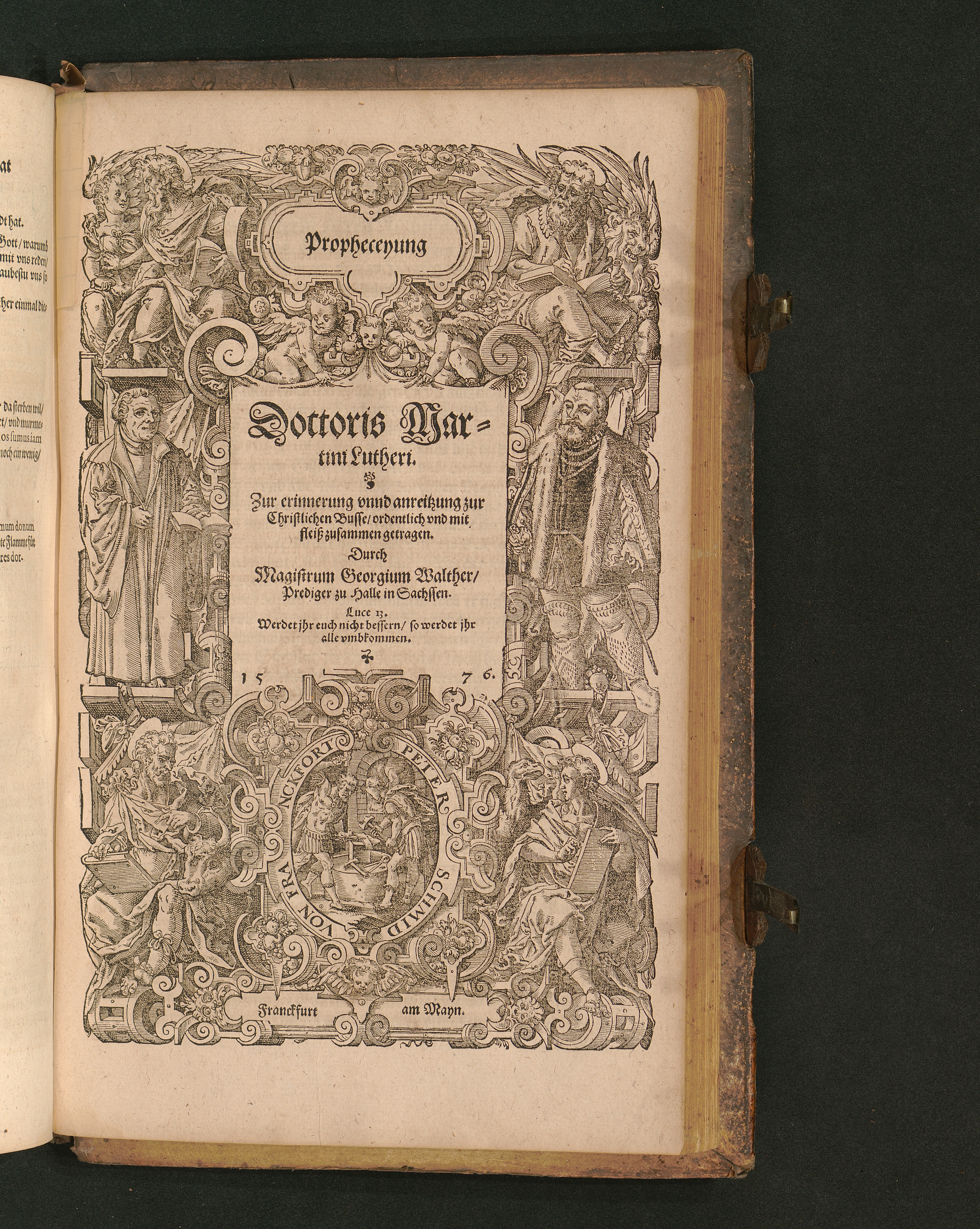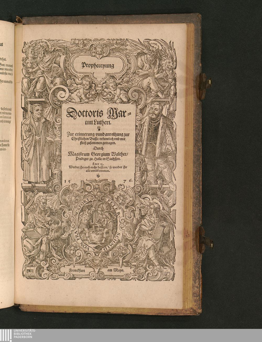 COLLOQVIA || Oder || Tischreden Do=||ctor Martini Lutheri/ : so er in vielen || Jaren/ die Zeit seines Lebens/ gegen Gelehrten Leuthen/ Auch || frembden Gesten vnd seinen Tischgesellen geführet. Darinn von allen Artickeln || vnser Religion/ Auch von hohen Stücken/ Fragen vnd Antwort: Item/|| viel mercklichen Historijs/ vnd sonst von allerley Lehre/ Trost/ Raht/|| vnnd vnterricht/ zu finden.|| / Anfenglichs von M. Anthonio Lauterbach zusammen getragen/ Hernacher in gewisse Locos || Communes verfasset/ vnd auß viel anderer Gelehrter Leute Collectaneis gemehret.|| Durch Johannem Aurifabern.||