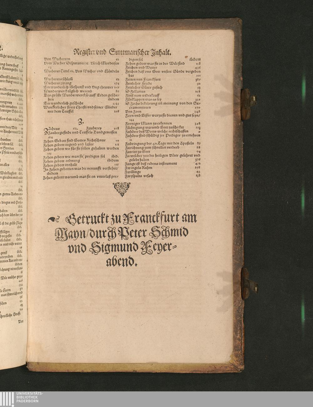 COLLOQVIA || Oder || Tischreden Do=||ctor Martini Lutheri/ : so er in vielen || Jaren/ die Zeit seines Lebens/ gegen Gelehrten Leuthen/ Auch || frembden Gesten vnd seinen Tischgesellen geführet. Darinn von allen Artickeln || vnser Religion/ Auch von hohen Stücken/ Fragen vnd Antwort: Item/|| viel mercklichen Historijs/ vnd sonst von allerley Lehre/ Trost/ Raht/|| vnnd vnterricht/ zu finden.|| / Anfenglichs von M. Anthonio Lauterbach zusammen getragen/ Hernacher in gewisse Locos || Communes verfasset/ vnd auß viel anderer Gelehrter Leute Collectaneis gemehret.|| Durch Johannem Aurifabern.||