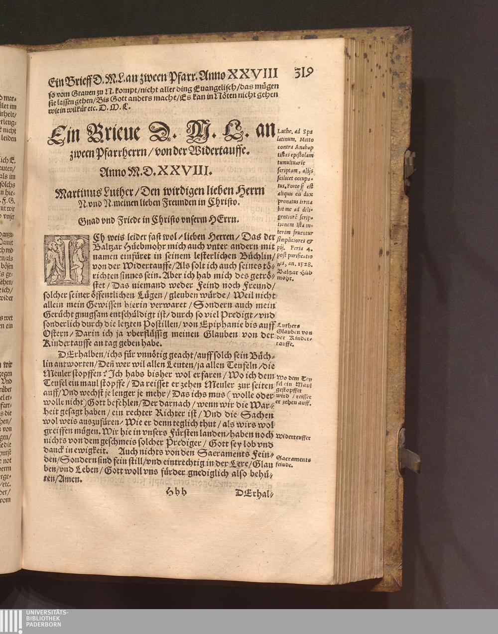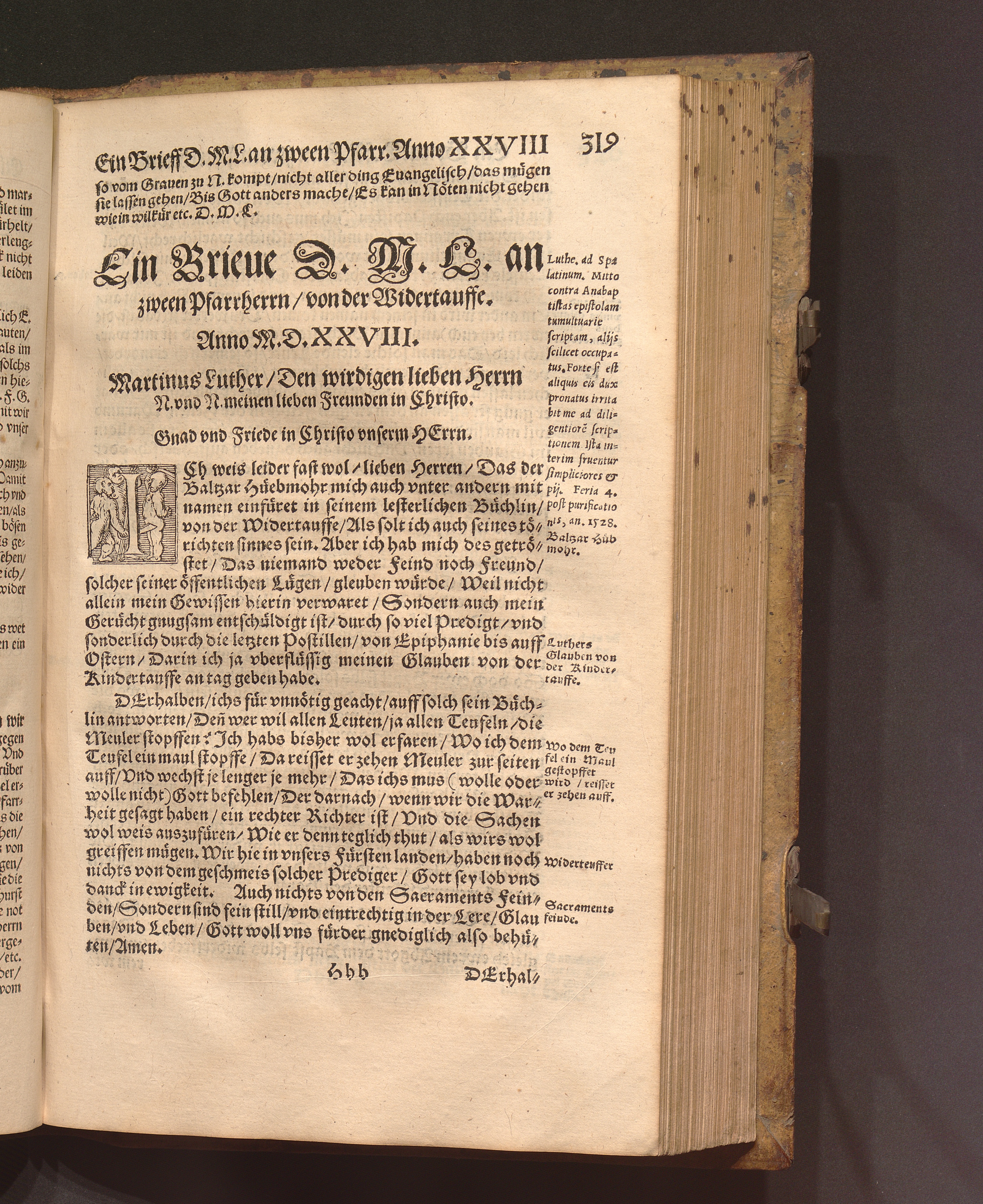Brieue D. M. L. an zween Pfarrherrn von der Widertauffe.