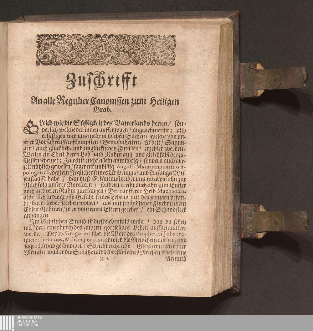Mausoleum S. Jacobi Apostoli Chronologico-Mysticum, Oder Geistliches Gebäw Jn Historischer Beschreibung des Vralten Apostolischen beydes Geschlechts Regulier Ordens des H. Apostels Jacobi zum Heiligen Grab : Allen/ bevor selben Ordens Geistlichen zur Nachricht und Trost heylsamblich auffgerichtet / Durch Den Woll-Ehrwürdigen Herrn Casparum Petrum Lûell der RegulierCanonissen des H. Grabs in Gülich Commissarium