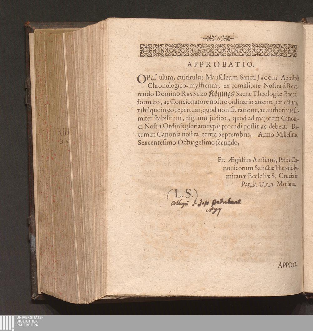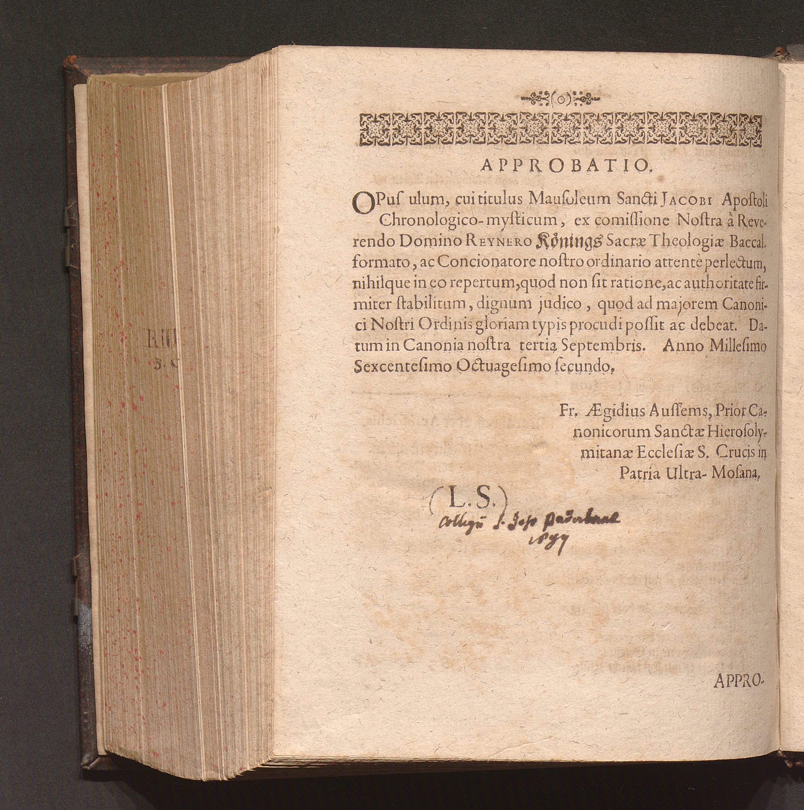 Mausoleum S. Jacobi Apostoli Chronologico-Mysticum, Oder Geistliches Gebäw Jn Historischer Beschreibung des Vralten Apostolischen beydes Geschlechts Regulier Ordens des H. Apostels Jacobi zum Heiligen Grab : Allen/ bevor selben Ordens Geistlichen zur Nachricht und Trost heylsamblich auffgerichtet / Durch Den Woll-Ehrwürdigen Herrn Casparum Petrum Lûell der RegulierCanonissen des H. Grabs in Gülich Commissarium