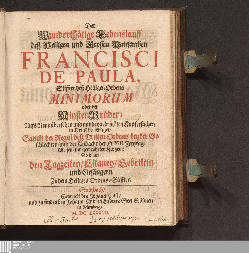 Der Wunderthätige Lebenslauff deß Heiligen und Grossen Patriarchen Francisci De Paula, Stiffter deß Heiligen Ordens Minimorum oder der MinstenBrüder