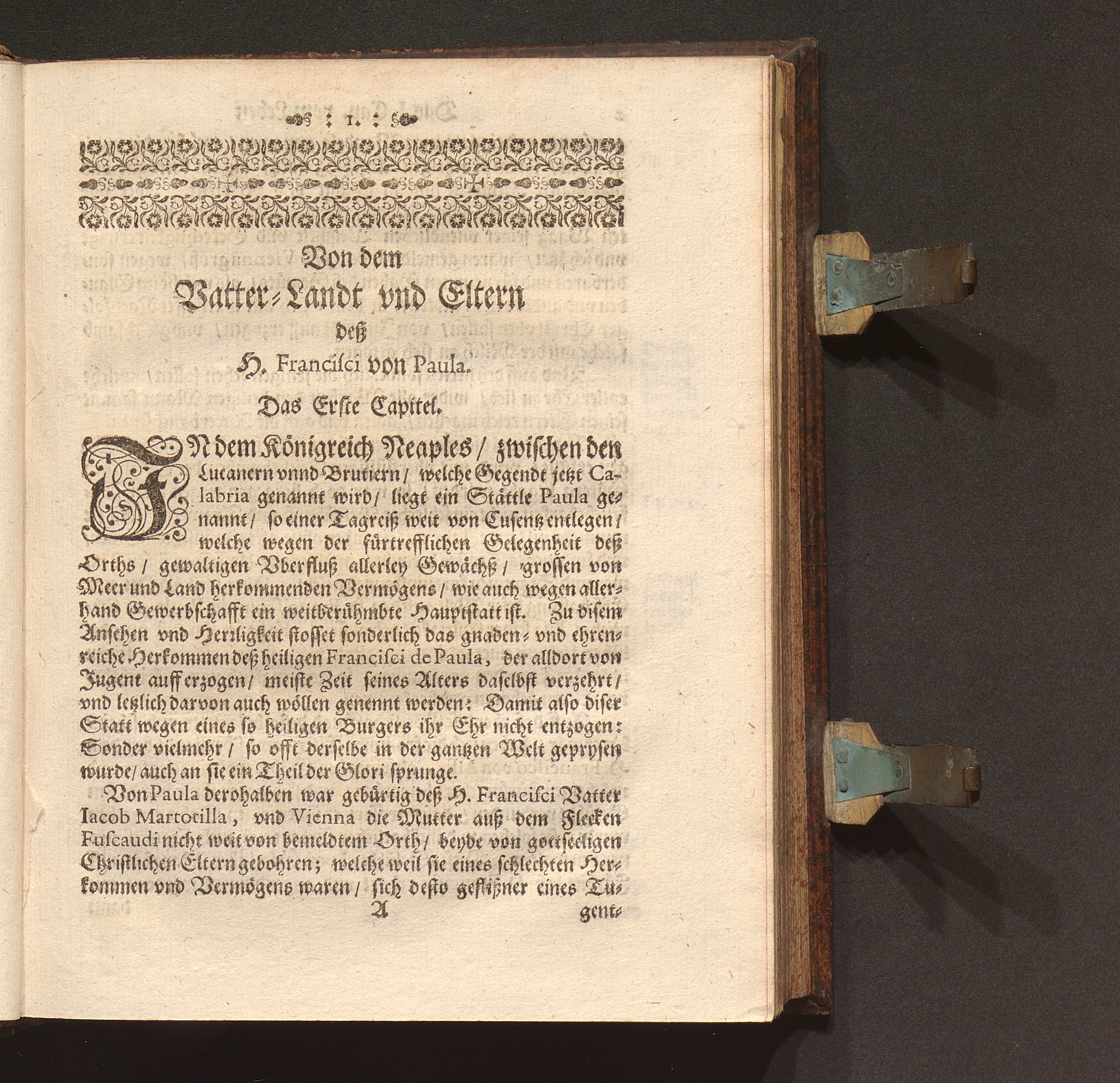 Das I. Capittel. Von dem Vatterlandt vnd Eltern deß H. Francisci von Paula.