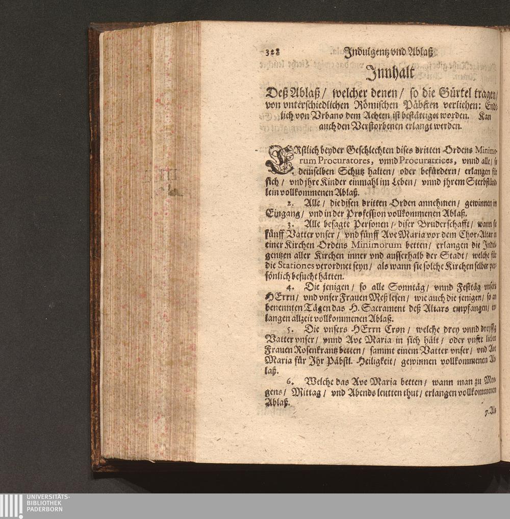 Jnnhalt Deß Ablaß/ welcher denen/ so die Gürtel tragen/ von vnterschiedlichen Römischen[...]