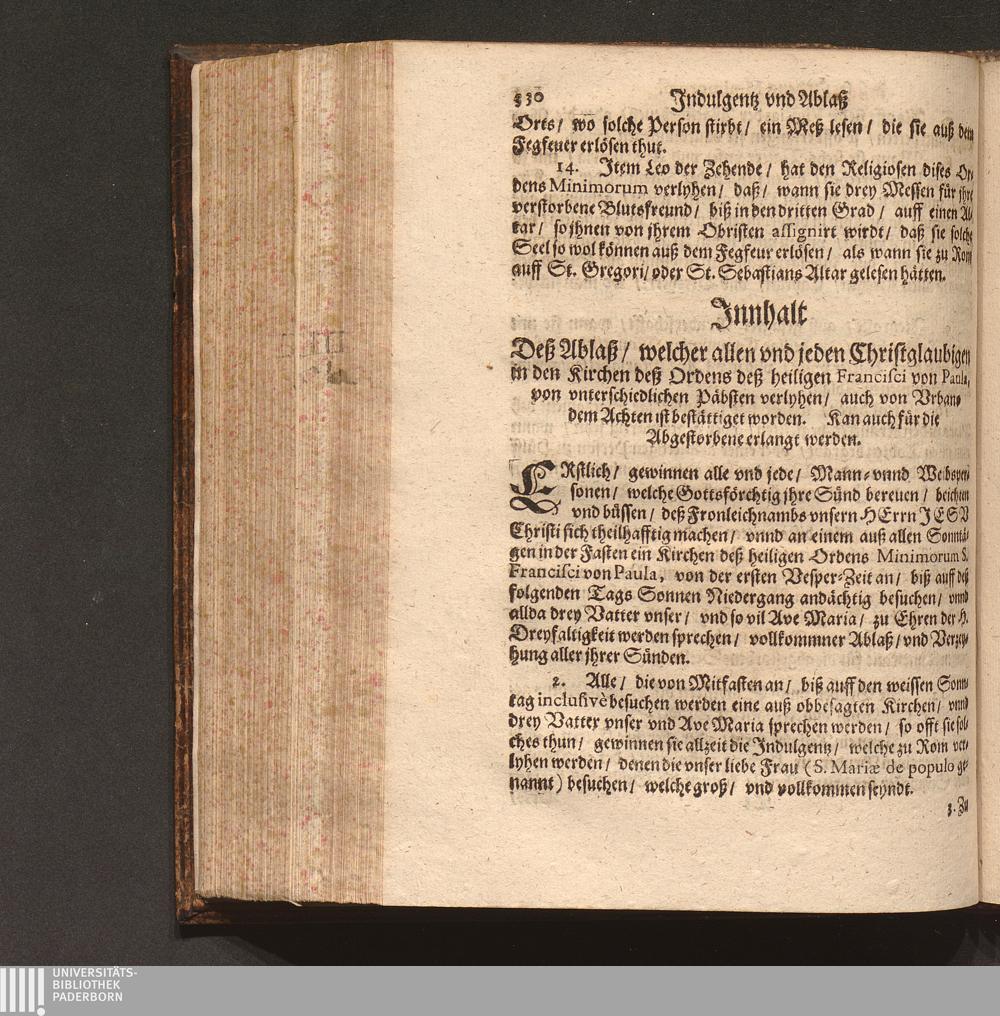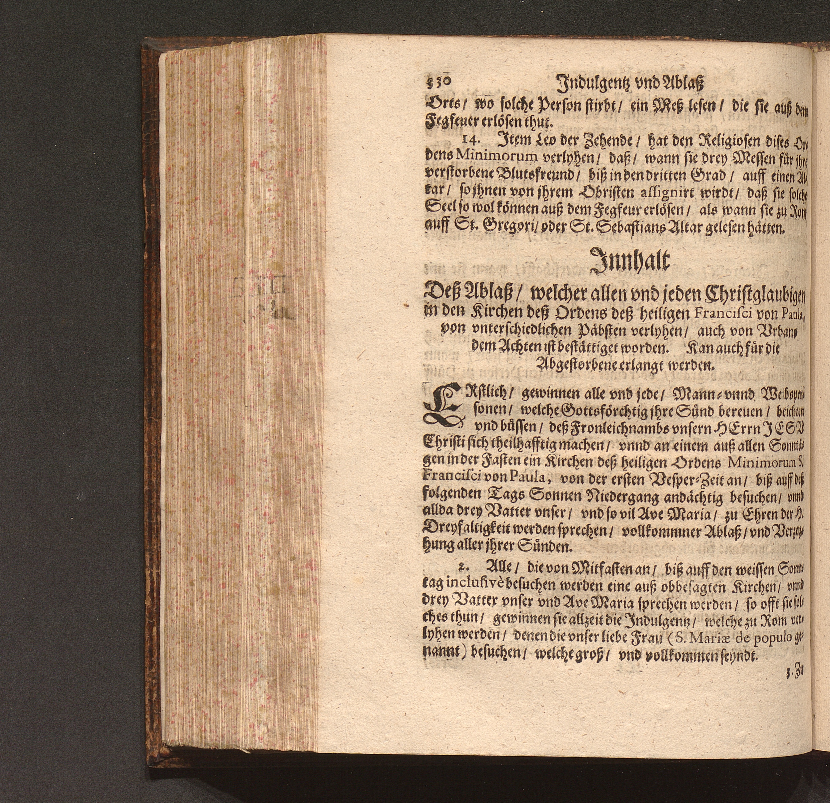 Jndulgentz vnd Ablaß deß H. Ordens Minimorum.