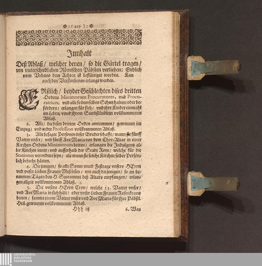Jnnhalt Deß Ablaß/ welcher denen/ so die Gürtel tragen/ von vnterschiedlichen Römischen[...]