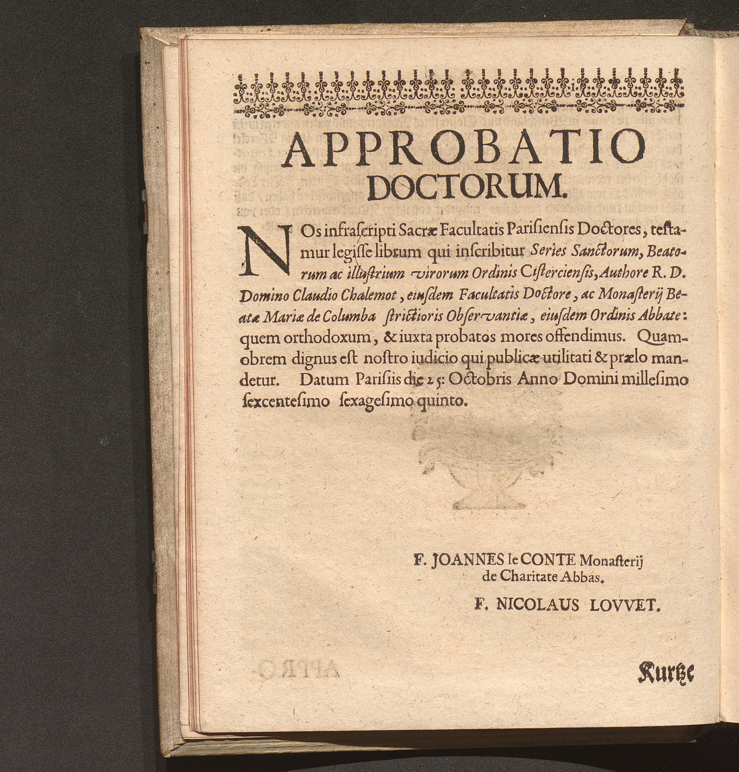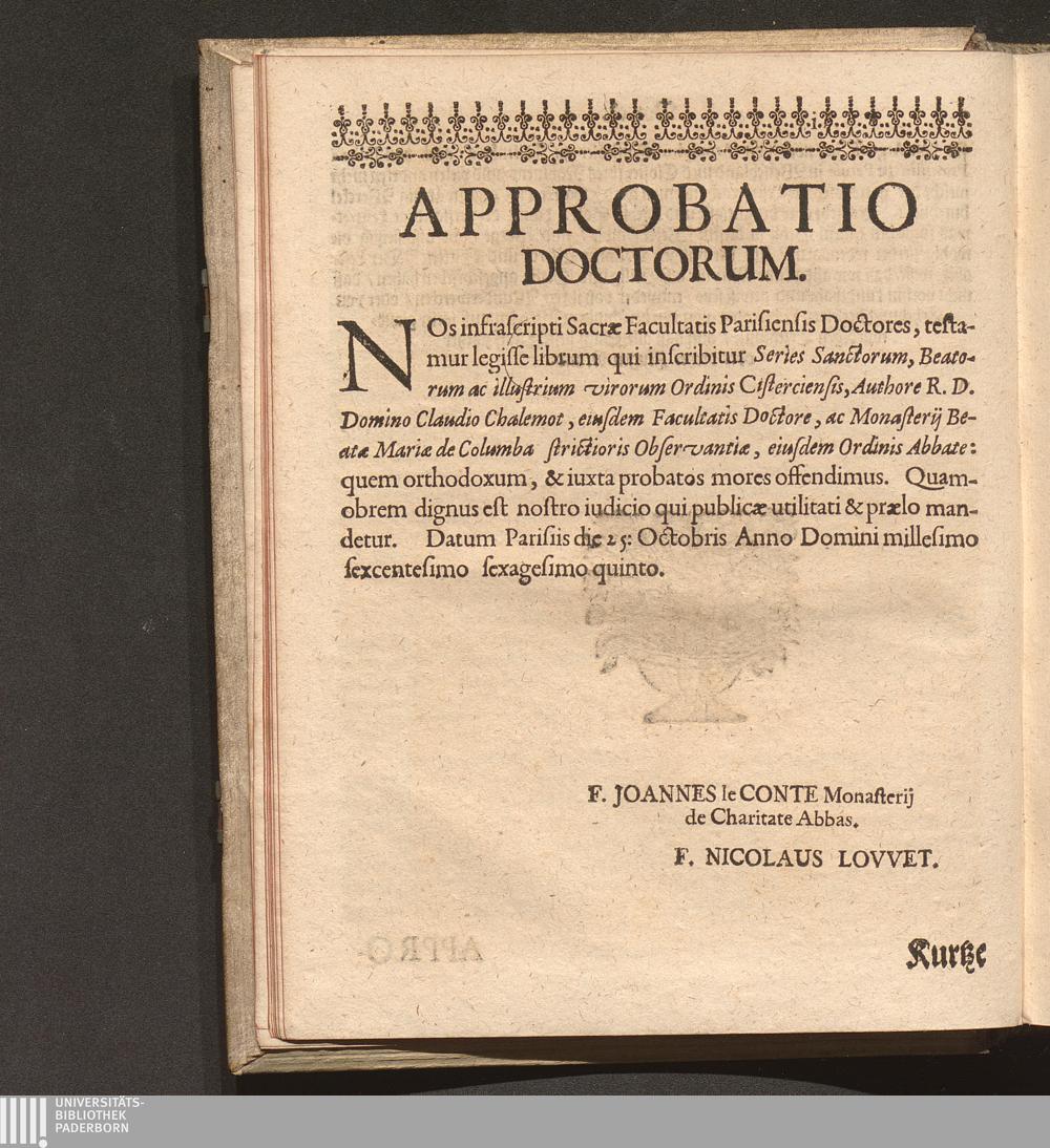 Kurtze Lebens Verfassung Der Heiligen und Seeligen Auch Berühmbten Männer Deß Heiligen Cistercienser Ordens / Von dem Hochwürdig- und Hochgelehrten Herren Claudio Chalemot, der heiligen Schrifft Pariser Facultät Doctorn, und deß Closters der Seeligen Mariæ de Columba Strengerer Observantz/ und gemelten Ordens Abbten/ in Lateinischer Sprach beschrieben. Jetzo aber ... gantz fleissig in die Teutsche Sprach übersetzt Durch R. P. F. Nivardum Henrici, Deß im Rhein-gau gelegenen Cistercienser Ordens Closters Eberbachs Professum ...