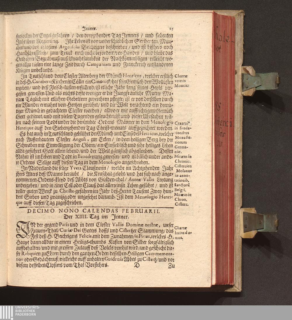 Kurtze Lebens Verfassung Der Heiligen und Seeligen Auch Berühmbten Männer Deß Heiligen Cistercienser Ordens / Von dem Hochwürdig- und Hochgelehrten Herren Claudio Chalemot, der heiligen Schrifft Pariser Facultät Doctorn, und deß Closters der Seeligen Mariæ de Columba Strengerer Observantz/ und gemelten Ordens Abbten/ in Lateinischer Sprach beschrieben. Jetzo aber ... gantz fleissig in die Teutsche Sprach übersetzt Durch R. P. F. Nivardum Henrici, Deß im Rhein-gau gelegenen Cistercienser Ordens Closters Eberbachs Professum ...