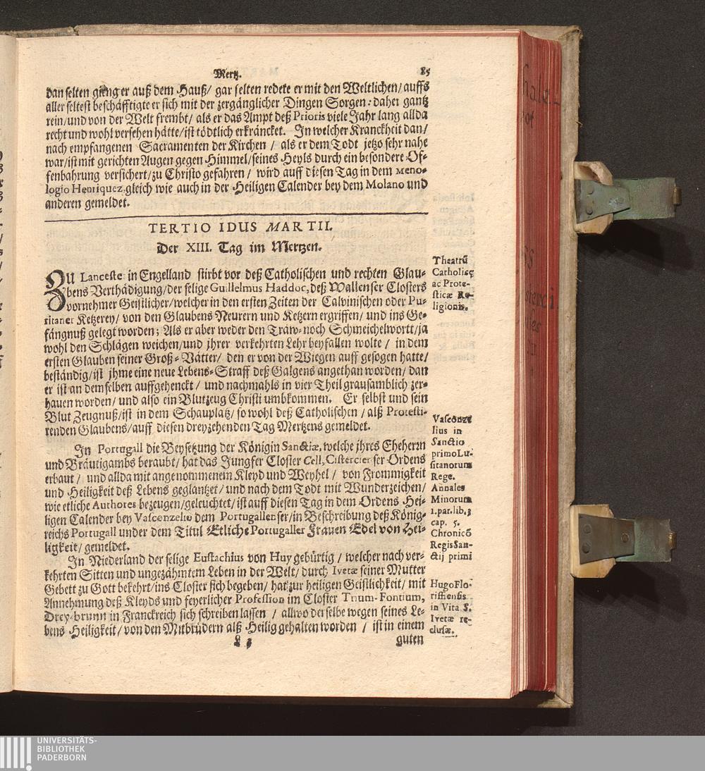 Kurtze Lebens Verfassung Der Heiligen und Seeligen Auch Berühmbten Männer Deß Heiligen Cistercienser Ordens / Von dem Hochwürdig- und Hochgelehrten Herren Claudio Chalemot, der heiligen Schrifft Pariser Facultät Doctorn, und deß Closters der Seeligen Mariæ de Columba Strengerer Observantz/ und gemelten Ordens Abbten/ in Lateinischer Sprach beschrieben. Jetzo aber ... gantz fleissig in die Teutsche Sprach übersetzt Durch R. P. F. Nivardum Henrici, Deß im Rhein-gau gelegenen Cistercienser Ordens Closters Eberbachs Professum ...