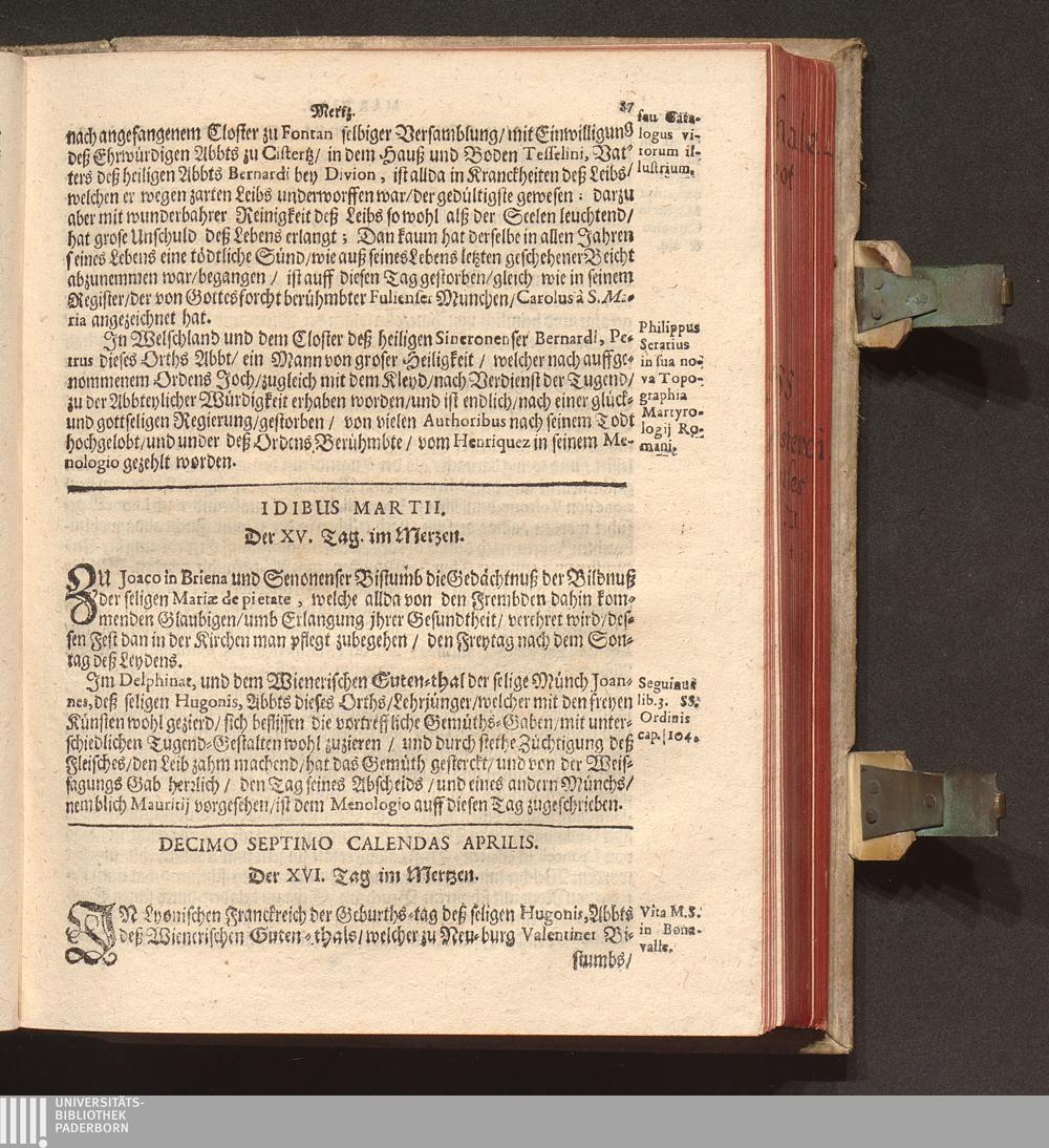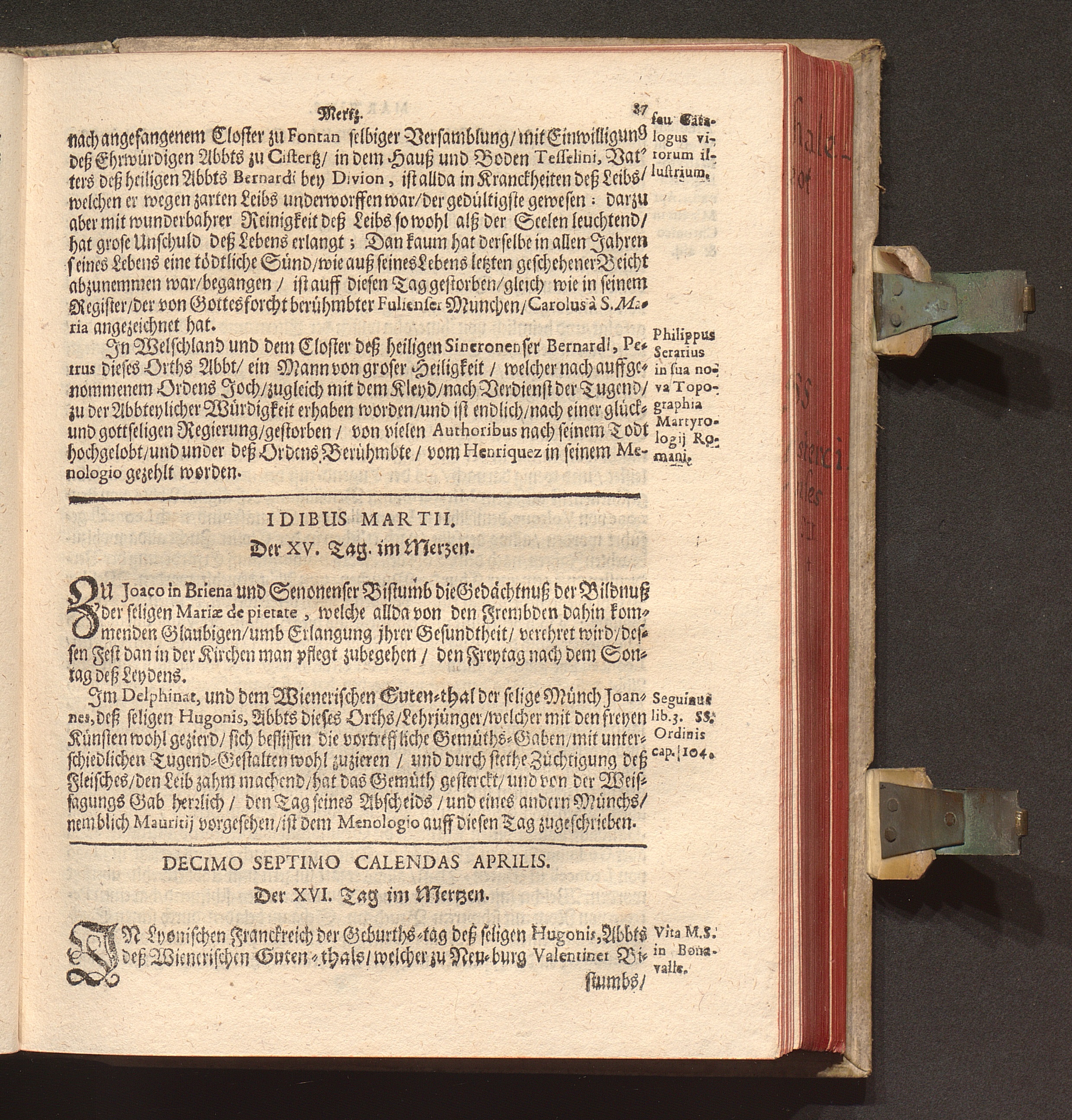 Kurtze Lebens Verfassung Der Heiligen und Seeligen Auch Berühmbten Männer Deß Heiligen Cistercienser Ordens / Von dem Hochwürdig- und Hochgelehrten Herren Claudio Chalemot, der heiligen Schrifft Pariser Facultät Doctorn, und deß Closters der Seeligen Mariæ de Columba Strengerer Observantz/ und gemelten Ordens Abbten/ in Lateinischer Sprach beschrieben. Jetzo aber ... gantz fleissig in die Teutsche Sprach übersetzt Durch R. P. F. Nivardum Henrici, Deß im Rhein-gau gelegenen Cistercienser Ordens Closters Eberbachs Professum ...