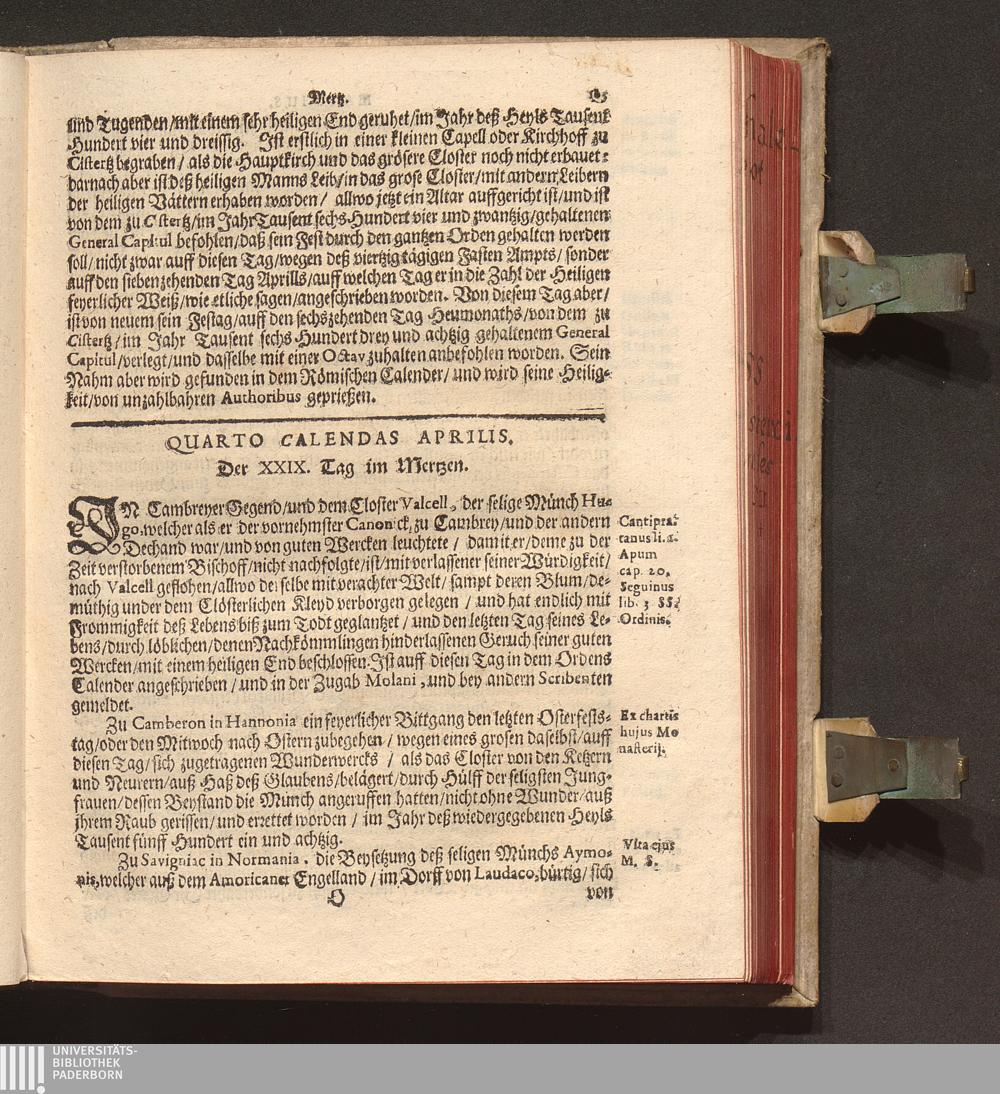 Kurtze Lebens Verfassung Der Heiligen und Seeligen Auch Berühmbten Männer Deß Heiligen Cistercienser Ordens / Von dem Hochwürdig- und Hochgelehrten Herren Claudio Chalemot, der heiligen Schrifft Pariser Facultät Doctorn, und deß Closters der Seeligen Mariæ de Columba Strengerer Observantz/ und gemelten Ordens Abbten/ in Lateinischer Sprach beschrieben. Jetzo aber ... gantz fleissig in die Teutsche Sprach übersetzt Durch R. P. F. Nivardum Henrici, Deß im Rhein-gau gelegenen Cistercienser Ordens Closters Eberbachs Professum ...