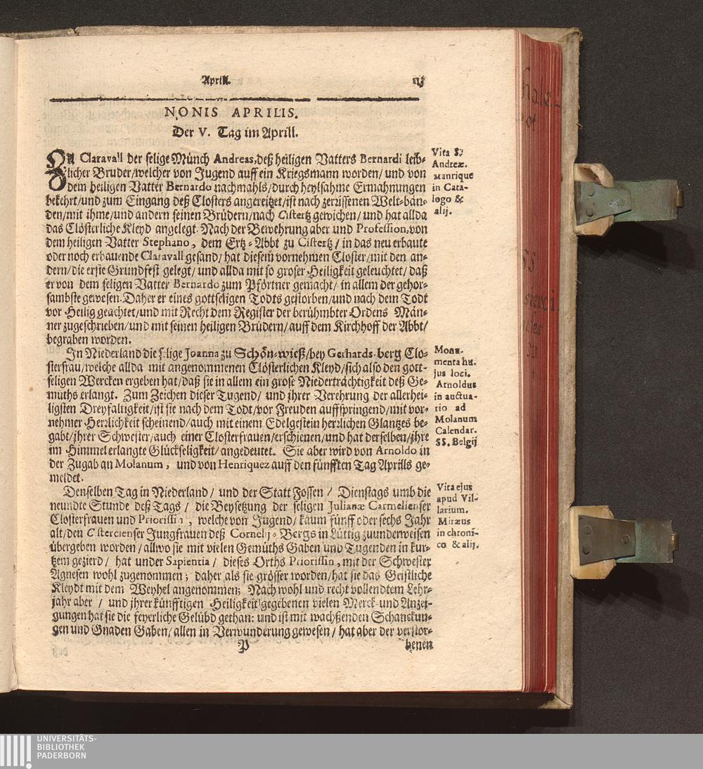 Kurtze Lebens Verfassung Der Heiligen und Seeligen Auch Berühmbten Männer Deß Heiligen Cistercienser Ordens / Von dem Hochwürdig- und Hochgelehrten Herren Claudio Chalemot, der heiligen Schrifft Pariser Facultät Doctorn, und deß Closters der Seeligen Mariæ de Columba Strengerer Observantz/ und gemelten Ordens Abbten/ in Lateinischer Sprach beschrieben. Jetzo aber ... gantz fleissig in die Teutsche Sprach übersetzt Durch R. P. F. Nivardum Henrici, Deß im Rhein-gau gelegenen Cistercienser Ordens Closters Eberbachs Professum ...