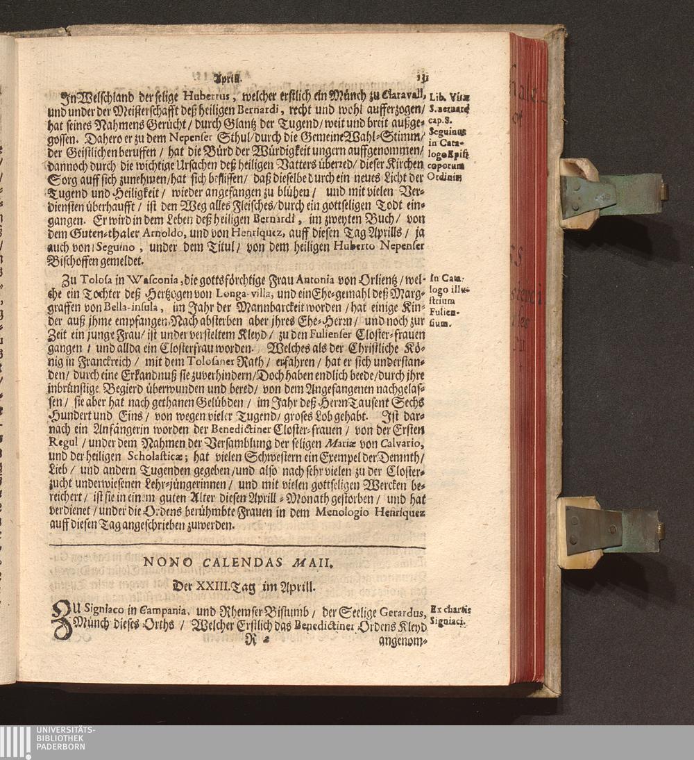 Kurtze Lebens Verfassung Der Heiligen und Seeligen Auch Berühmbten Männer Deß Heiligen Cistercienser Ordens / Von dem Hochwürdig- und Hochgelehrten Herren Claudio Chalemot, der heiligen Schrifft Pariser Facultät Doctorn, und deß Closters der Seeligen Mariæ de Columba Strengerer Observantz/ und gemelten Ordens Abbten/ in Lateinischer Sprach beschrieben. Jetzo aber ... gantz fleissig in die Teutsche Sprach übersetzt Durch R. P. F. Nivardum Henrici, Deß im Rhein-gau gelegenen Cistercienser Ordens Closters Eberbachs Professum ...