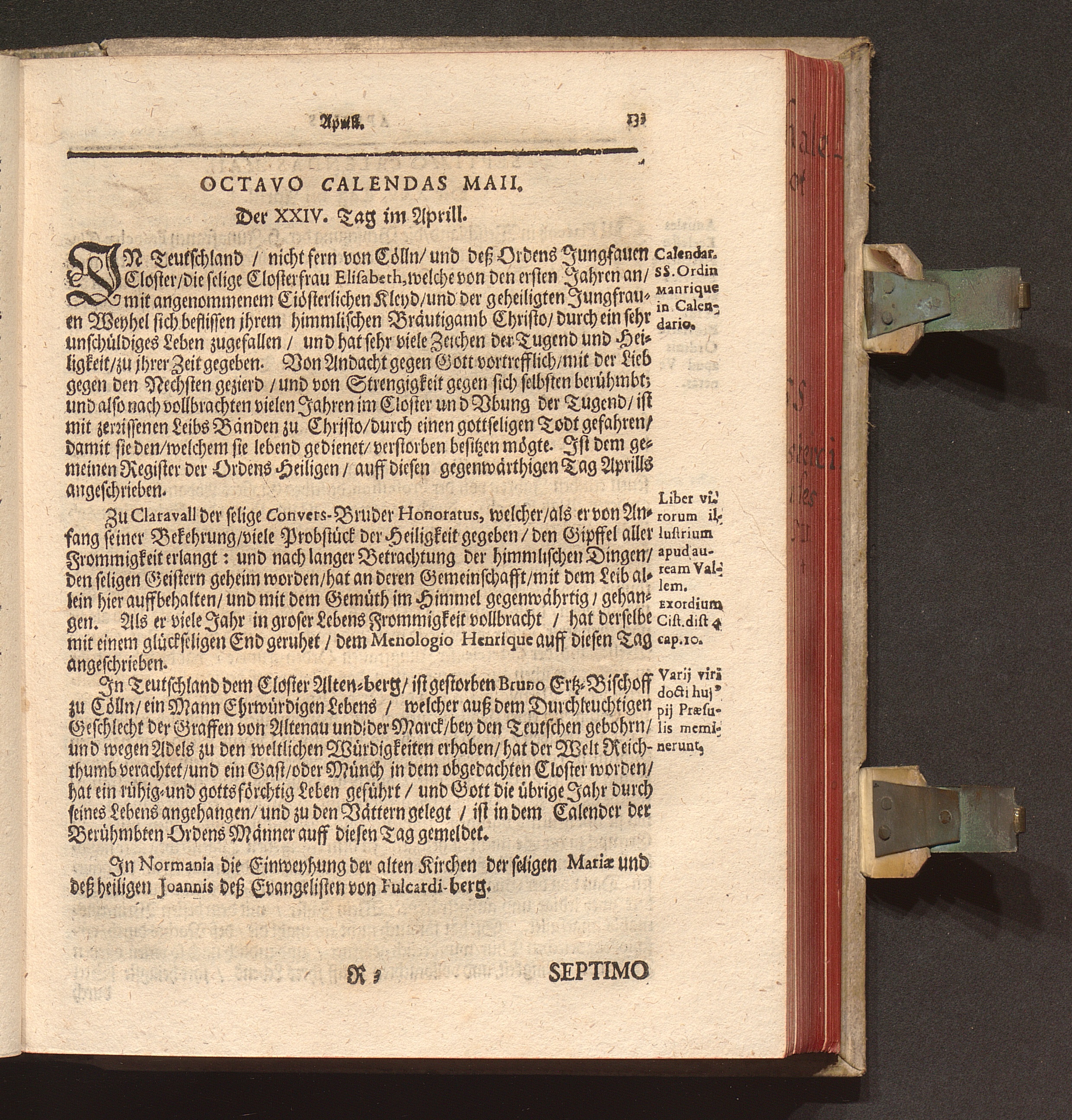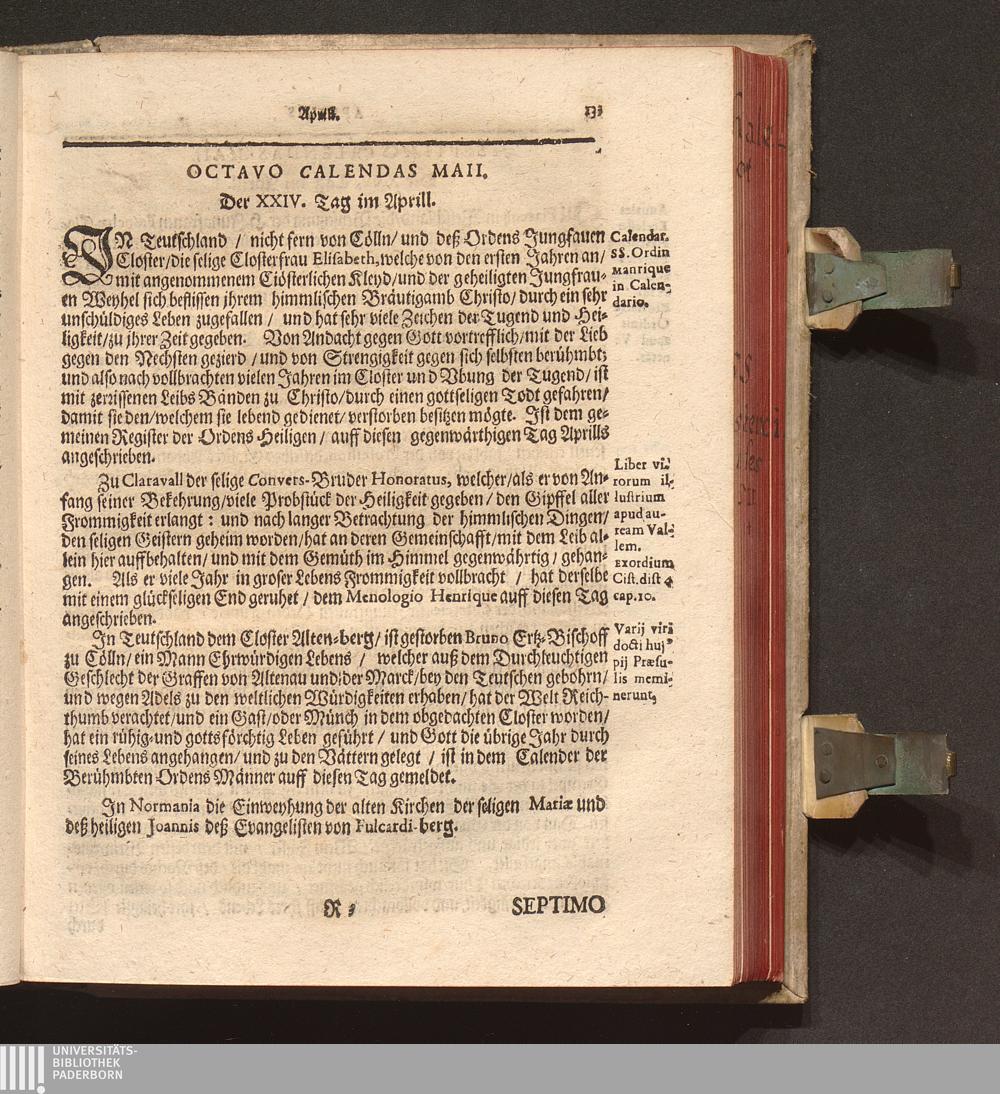 Kurtze Lebens Verfassung Der Heiligen und Seeligen Auch Berühmbten Männer Deß Heiligen Cistercienser Ordens / Von dem Hochwürdig- und Hochgelehrten Herren Claudio Chalemot, der heiligen Schrifft Pariser Facultät Doctorn, und deß Closters der Seeligen Mariæ de Columba Strengerer Observantz/ und gemelten Ordens Abbten/ in Lateinischer Sprach beschrieben. Jetzo aber ... gantz fleissig in die Teutsche Sprach übersetzt Durch R. P. F. Nivardum Henrici, Deß im Rhein-gau gelegenen Cistercienser Ordens Closters Eberbachs Professum ...