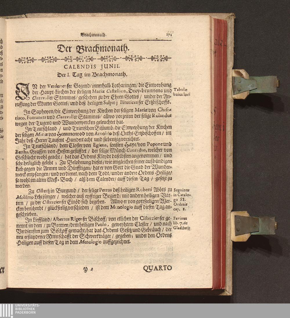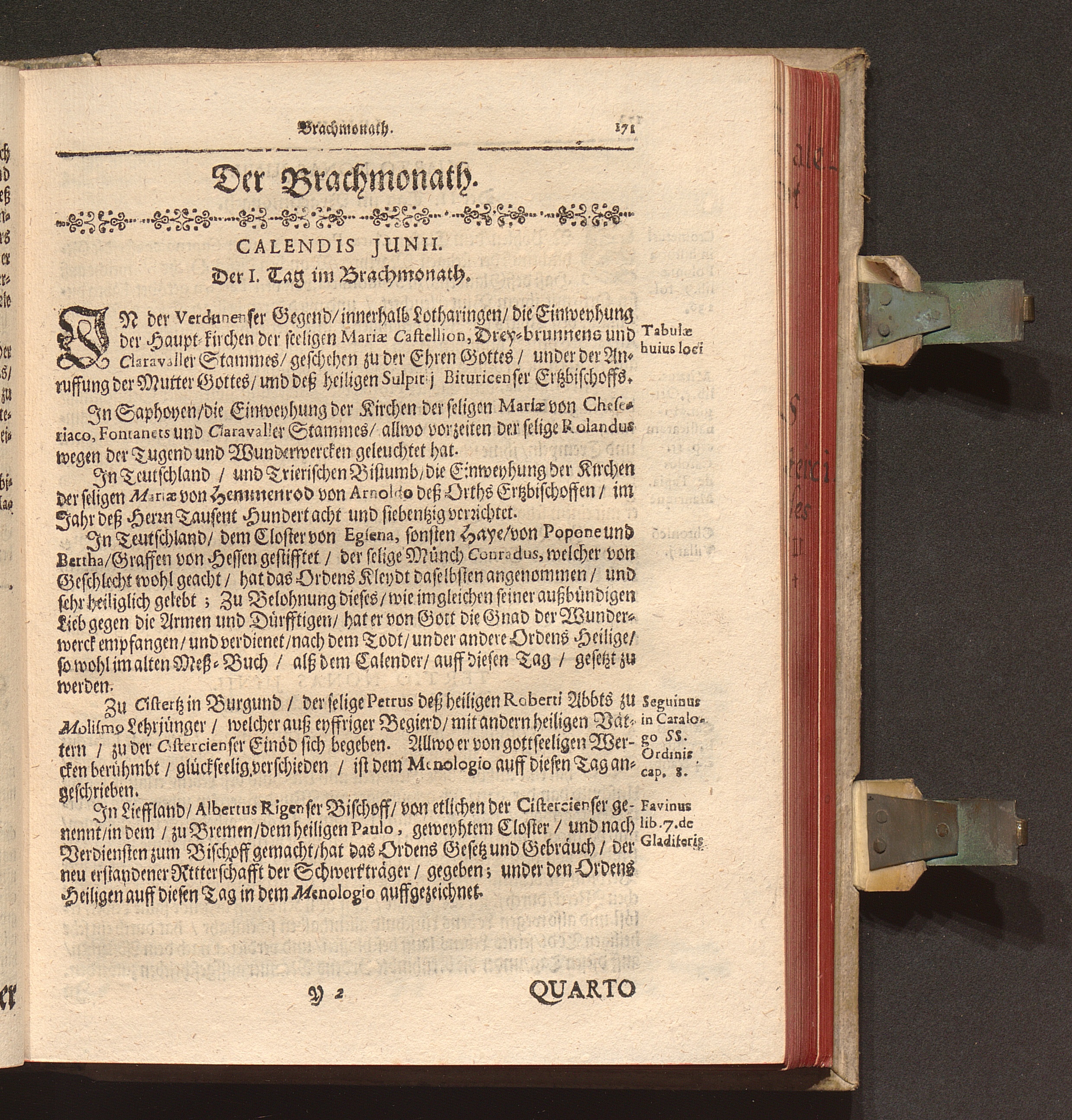 Kurtze Lebens Verfassung Der Heiligen und Seeligen Auch Berühmbten Männer Deß Heiligen Cistercienser Ordens / Von dem Hochwürdig- und Hochgelehrten Herren Claudio Chalemot, der heiligen Schrifft Pariser Facultät Doctorn, und deß Closters der Seeligen Mariæ de Columba Strengerer Observantz/ und gemelten Ordens Abbten/ in Lateinischer Sprach beschrieben. Jetzo aber ... gantz fleissig in die Teutsche Sprach übersetzt Durch R. P. F. Nivardum Henrici, Deß im Rhein-gau gelegenen Cistercienser Ordens Closters Eberbachs Professum ...