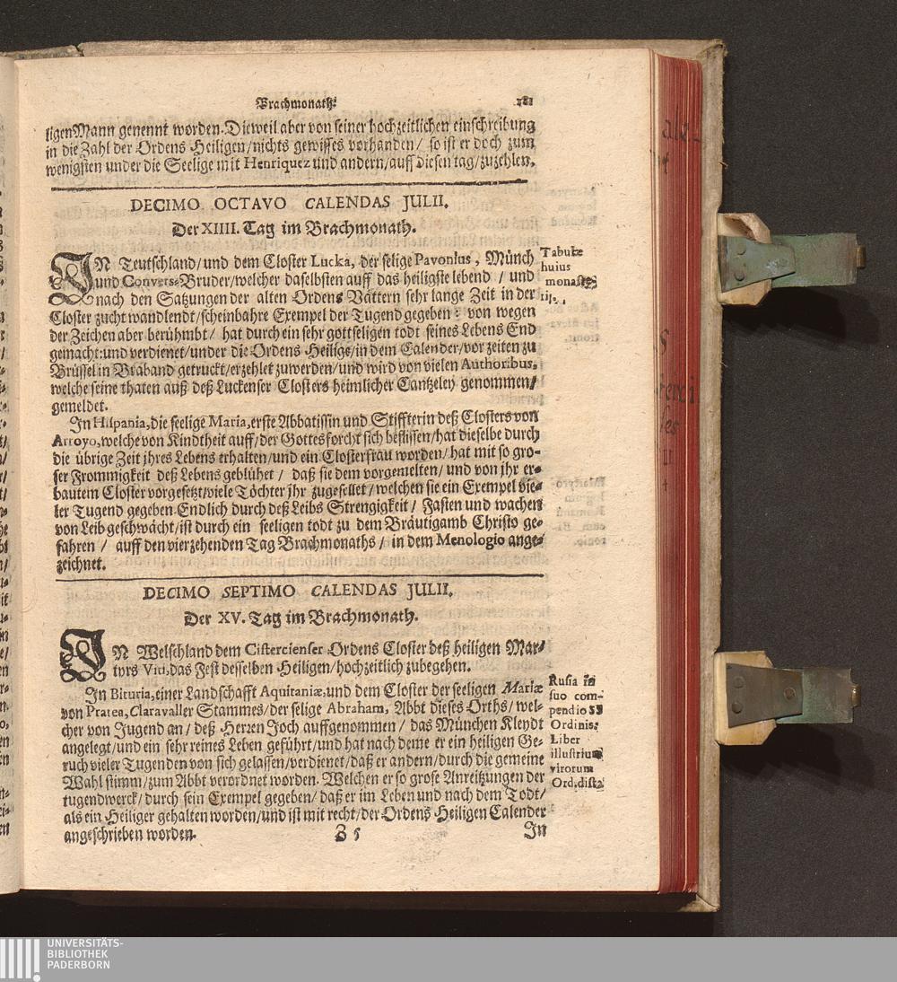 Kurtze Lebens Verfassung Der Heiligen und Seeligen Auch Berühmbten Männer Deß Heiligen Cistercienser Ordens / Von dem Hochwürdig- und Hochgelehrten Herren Claudio Chalemot, der heiligen Schrifft Pariser Facultät Doctorn, und deß Closters der Seeligen Mariæ de Columba Strengerer Observantz/ und gemelten Ordens Abbten/ in Lateinischer Sprach beschrieben. Jetzo aber ... gantz fleissig in die Teutsche Sprach übersetzt Durch R. P. F. Nivardum Henrici, Deß im Rhein-gau gelegenen Cistercienser Ordens Closters Eberbachs Professum ...