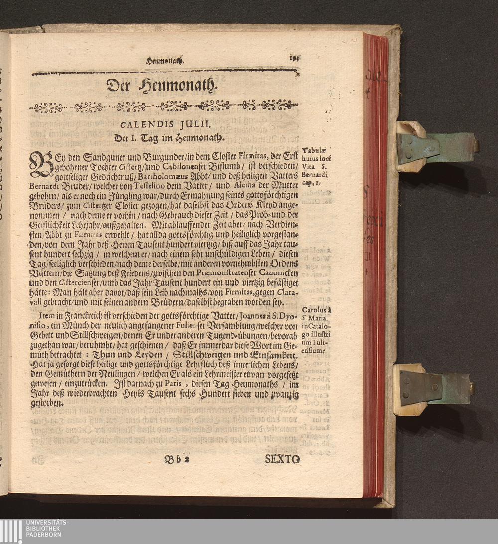 Kurtze Lebens Verfassung Der Heiligen und Seeligen Auch Berühmbten Männer Deß Heiligen Cistercienser Ordens / Von dem Hochwürdig- und Hochgelehrten Herren Claudio Chalemot, der heiligen Schrifft Pariser Facultät Doctorn, und deß Closters der Seeligen Mariæ de Columba Strengerer Observantz/ und gemelten Ordens Abbten/ in Lateinischer Sprach beschrieben. Jetzo aber ... gantz fleissig in die Teutsche Sprach übersetzt Durch R. P. F. Nivardum Henrici, Deß im Rhein-gau gelegenen Cistercienser Ordens Closters Eberbachs Professum ...