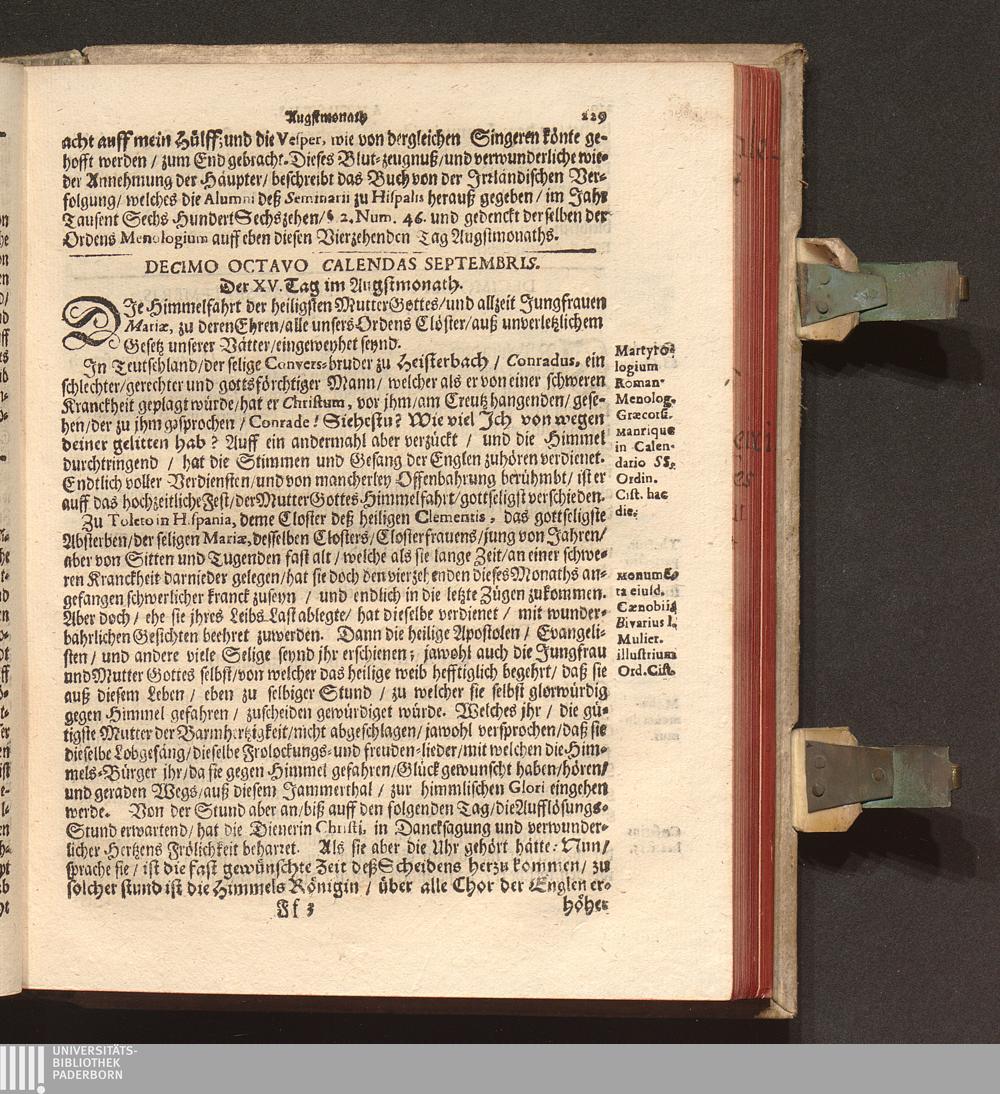 Kurtze Lebens Verfassung Der Heiligen und Seeligen Auch Berühmbten Männer Deß Heiligen Cistercienser Ordens / Von dem Hochwürdig- und Hochgelehrten Herren Claudio Chalemot, der heiligen Schrifft Pariser Facultät Doctorn, und deß Closters der Seeligen Mariæ de Columba Strengerer Observantz/ und gemelten Ordens Abbten/ in Lateinischer Sprach beschrieben. Jetzo aber ... gantz fleissig in die Teutsche Sprach übersetzt Durch R. P. F. Nivardum Henrici, Deß im Rhein-gau gelegenen Cistercienser Ordens Closters Eberbachs Professum ...
