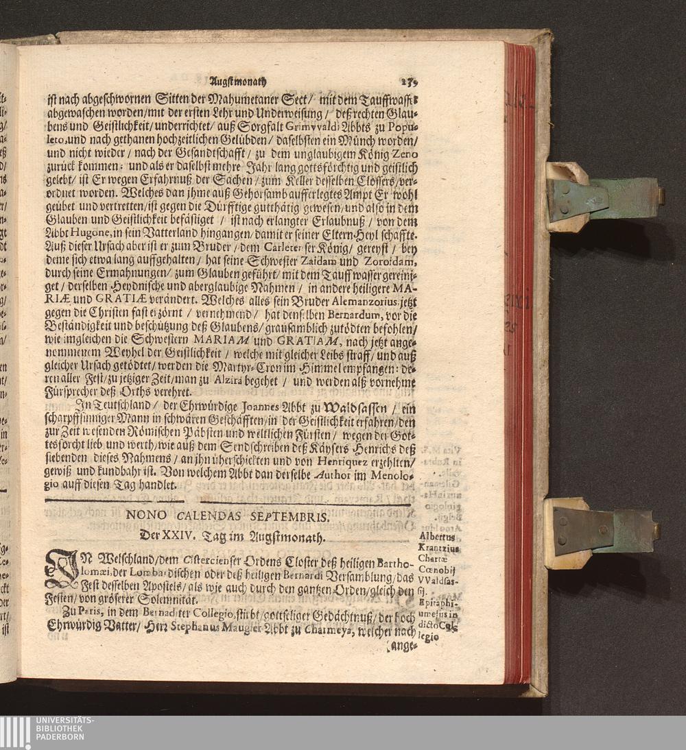 Kurtze Lebens Verfassung Der Heiligen und Seeligen Auch Berühmbten Männer Deß Heiligen Cistercienser Ordens / Von dem Hochwürdig- und Hochgelehrten Herren Claudio Chalemot, der heiligen Schrifft Pariser Facultät Doctorn, und deß Closters der Seeligen Mariæ de Columba Strengerer Observantz/ und gemelten Ordens Abbten/ in Lateinischer Sprach beschrieben. Jetzo aber ... gantz fleissig in die Teutsche Sprach übersetzt Durch R. P. F. Nivardum Henrici, Deß im Rhein-gau gelegenen Cistercienser Ordens Closters Eberbachs Professum ...