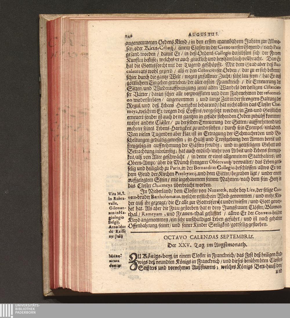Kurtze Lebens Verfassung Der Heiligen und Seeligen Auch Berühmbten Männer Deß Heiligen Cistercienser Ordens / Von dem Hochwürdig- und Hochgelehrten Herren Claudio Chalemot, der heiligen Schrifft Pariser Facultät Doctorn, und deß Closters der Seeligen Mariæ de Columba Strengerer Observantz/ und gemelten Ordens Abbten/ in Lateinischer Sprach beschrieben. Jetzo aber ... gantz fleissig in die Teutsche Sprach übersetzt Durch R. P. F. Nivardum Henrici, Deß im Rhein-gau gelegenen Cistercienser Ordens Closters Eberbachs Professum ...