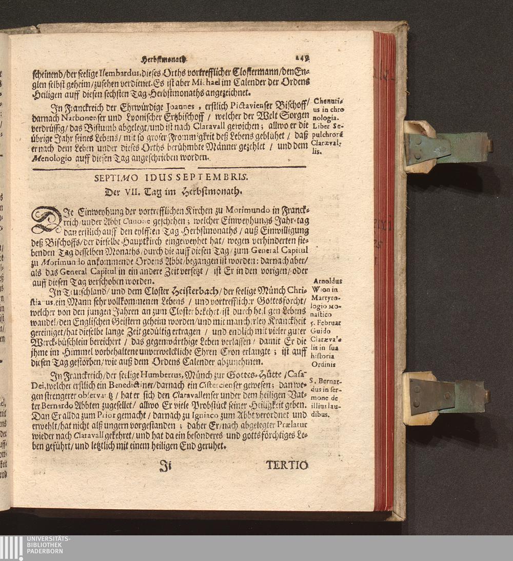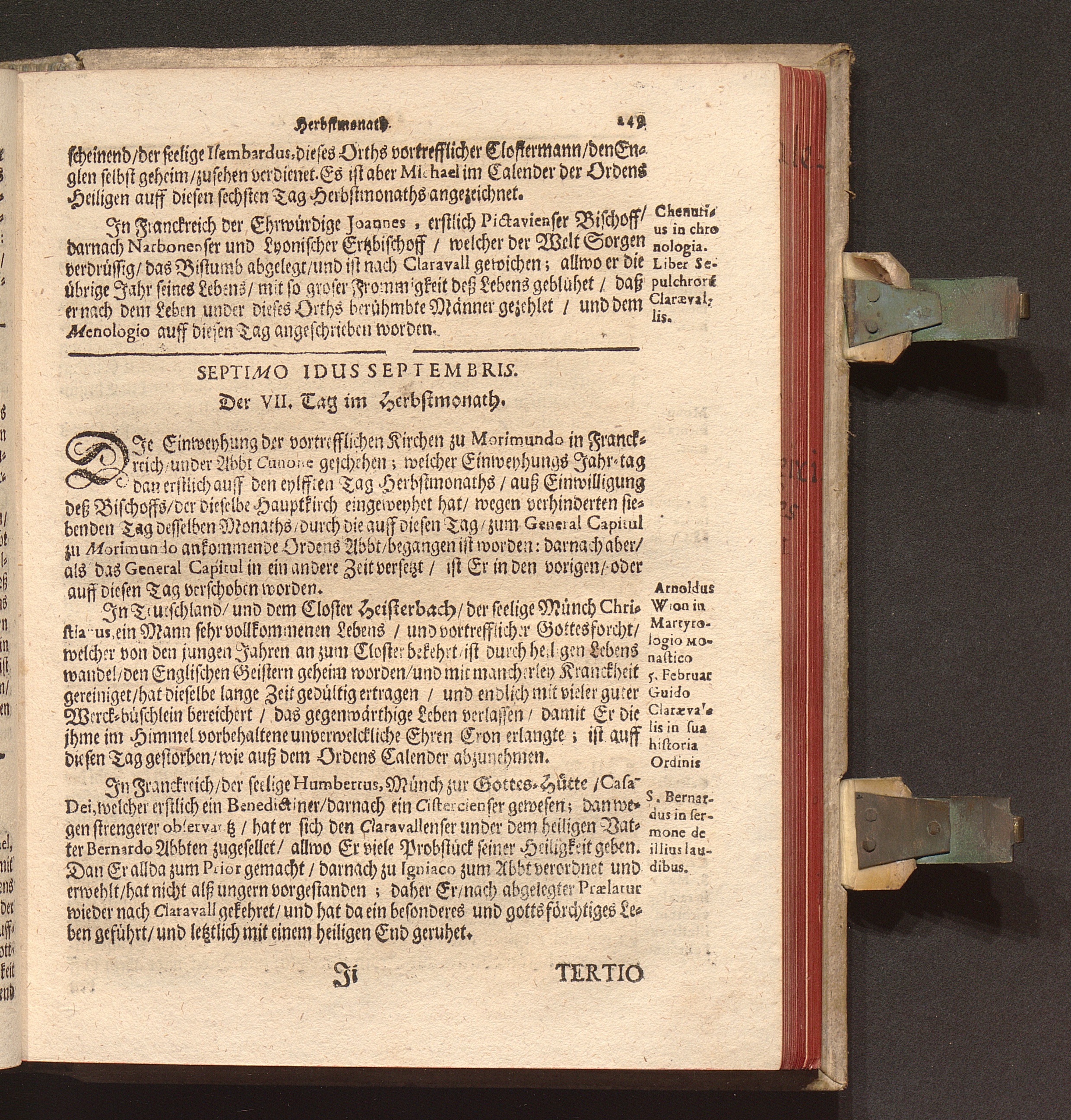 Kurtze Lebens Verfassung Der Heiligen und Seeligen Auch Berühmbten Männer Deß Heiligen Cistercienser Ordens / Von dem Hochwürdig- und Hochgelehrten Herren Claudio Chalemot, der heiligen Schrifft Pariser Facultät Doctorn, und deß Closters der Seeligen Mariæ de Columba Strengerer Observantz/ und gemelten Ordens Abbten/ in Lateinischer Sprach beschrieben. Jetzo aber ... gantz fleissig in die Teutsche Sprach übersetzt Durch R. P. F. Nivardum Henrici, Deß im Rhein-gau gelegenen Cistercienser Ordens Closters Eberbachs Professum ...