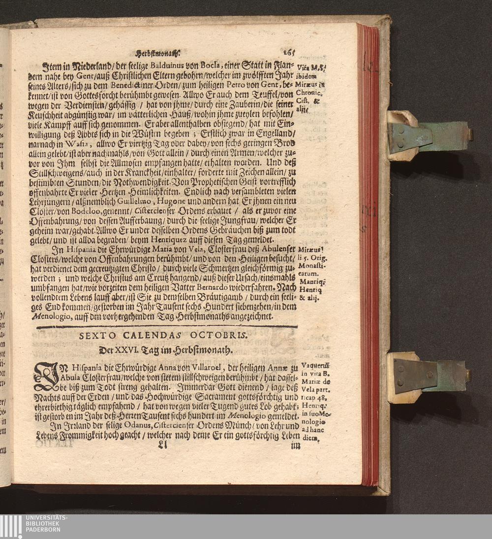 Kurtze Lebens Verfassung Der Heiligen und Seeligen Auch Berühmbten Männer Deß Heiligen Cistercienser Ordens / Von dem Hochwürdig- und Hochgelehrten Herren Claudio Chalemot, der heiligen Schrifft Pariser Facultät Doctorn, und deß Closters der Seeligen Mariæ de Columba Strengerer Observantz/ und gemelten Ordens Abbten/ in Lateinischer Sprach beschrieben. Jetzo aber ... gantz fleissig in die Teutsche Sprach übersetzt Durch R. P. F. Nivardum Henrici, Deß im Rhein-gau gelegenen Cistercienser Ordens Closters Eberbachs Professum ...