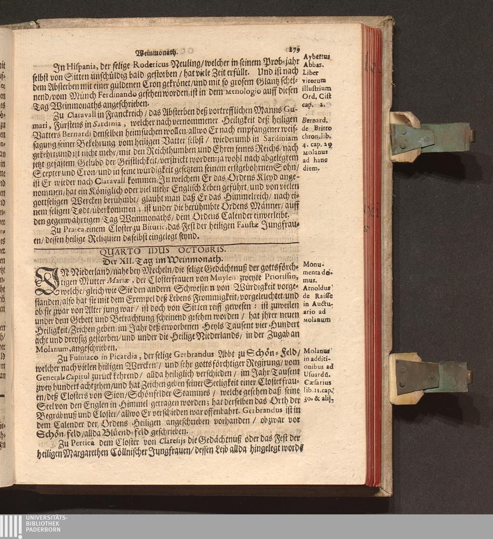 Kurtze Lebens Verfassung Der Heiligen und Seeligen Auch Berühmbten Männer Deß Heiligen Cistercienser Ordens / Von dem Hochwürdig- und Hochgelehrten Herren Claudio Chalemot, der heiligen Schrifft Pariser Facultät Doctorn, und deß Closters der Seeligen Mariæ de Columba Strengerer Observantz/ und gemelten Ordens Abbten/ in Lateinischer Sprach beschrieben. Jetzo aber ... gantz fleissig in die Teutsche Sprach übersetzt Durch R. P. F. Nivardum Henrici, Deß im Rhein-gau gelegenen Cistercienser Ordens Closters Eberbachs Professum ...