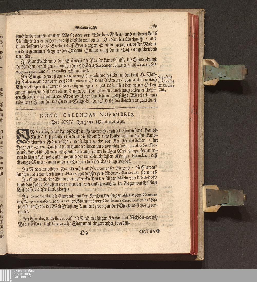 Kurtze Lebens Verfassung Der Heiligen und Seeligen Auch Berühmbten Männer Deß Heiligen Cistercienser Ordens / Von dem Hochwürdig- und Hochgelehrten Herren Claudio Chalemot, der heiligen Schrifft Pariser Facultät Doctorn, und deß Closters der Seeligen Mariæ de Columba Strengerer Observantz/ und gemelten Ordens Abbten/ in Lateinischer Sprach beschrieben. Jetzo aber ... gantz fleissig in die Teutsche Sprach übersetzt Durch R. P. F. Nivardum Henrici, Deß im Rhein-gau gelegenen Cistercienser Ordens Closters Eberbachs Professum ...