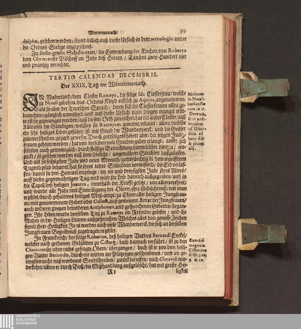 Kurtze Lebens Verfassung Der Heiligen und Seeligen Auch Berühmbten Männer Deß Heiligen Cistercienser Ordens / Von dem Hochwürdig- und Hochgelehrten Herren Claudio Chalemot, der heiligen Schrifft Pariser Facultät Doctorn, und deß Closters der Seeligen Mariæ de Columba Strengerer Observantz/ und gemelten Ordens Abbten/ in Lateinischer Sprach beschrieben. Jetzo aber ... gantz fleissig in die Teutsche Sprach übersetzt Durch R. P. F. Nivardum Henrici, Deß im Rhein-gau gelegenen Cistercienser Ordens Closters Eberbachs Professum ...