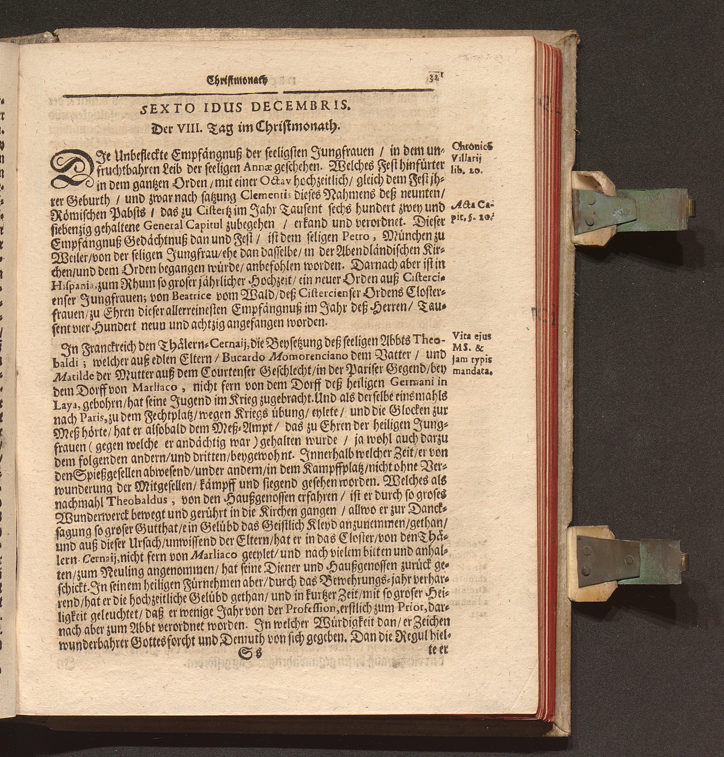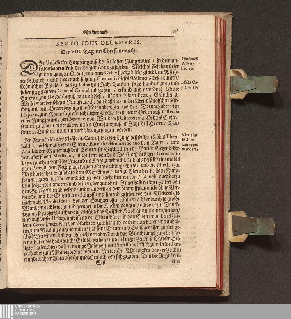 Kurtze Lebens Verfassung Der Heiligen und Seeligen Auch Berühmbten Männer Deß Heiligen Cistercienser Ordens / Von dem Hochwürdig- und Hochgelehrten Herren Claudio Chalemot, der heiligen Schrifft Pariser Facultät Doctorn, und deß Closters der Seeligen Mariæ de Columba Strengerer Observantz/ und gemelten Ordens Abbten/ in Lateinischer Sprach beschrieben. Jetzo aber ... gantz fleissig in die Teutsche Sprach übersetzt Durch R. P. F. Nivardum Henrici, Deß im Rhein-gau gelegenen Cistercienser Ordens Closters Eberbachs Professum ...