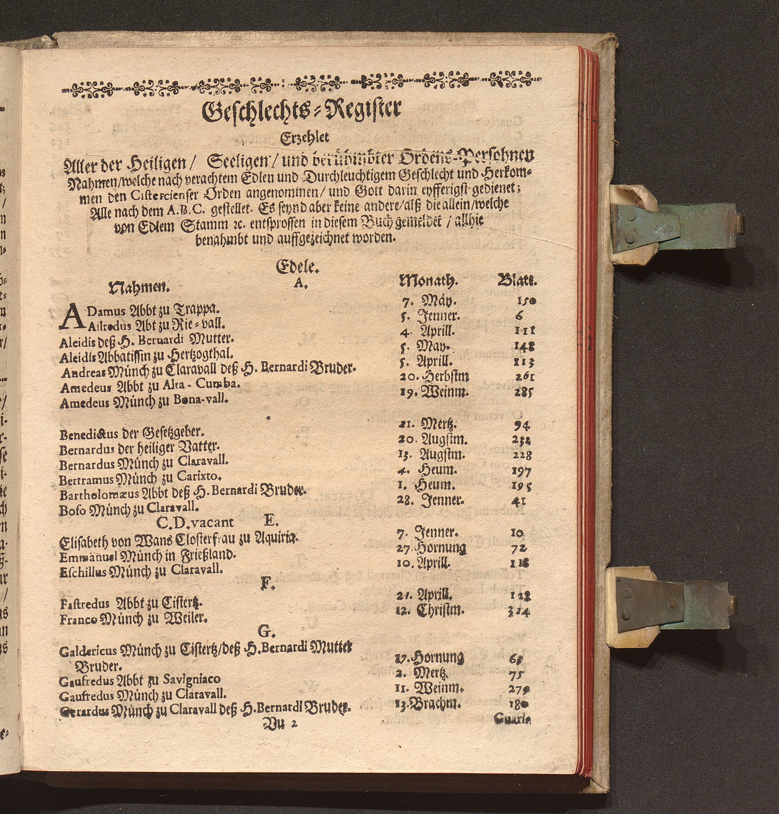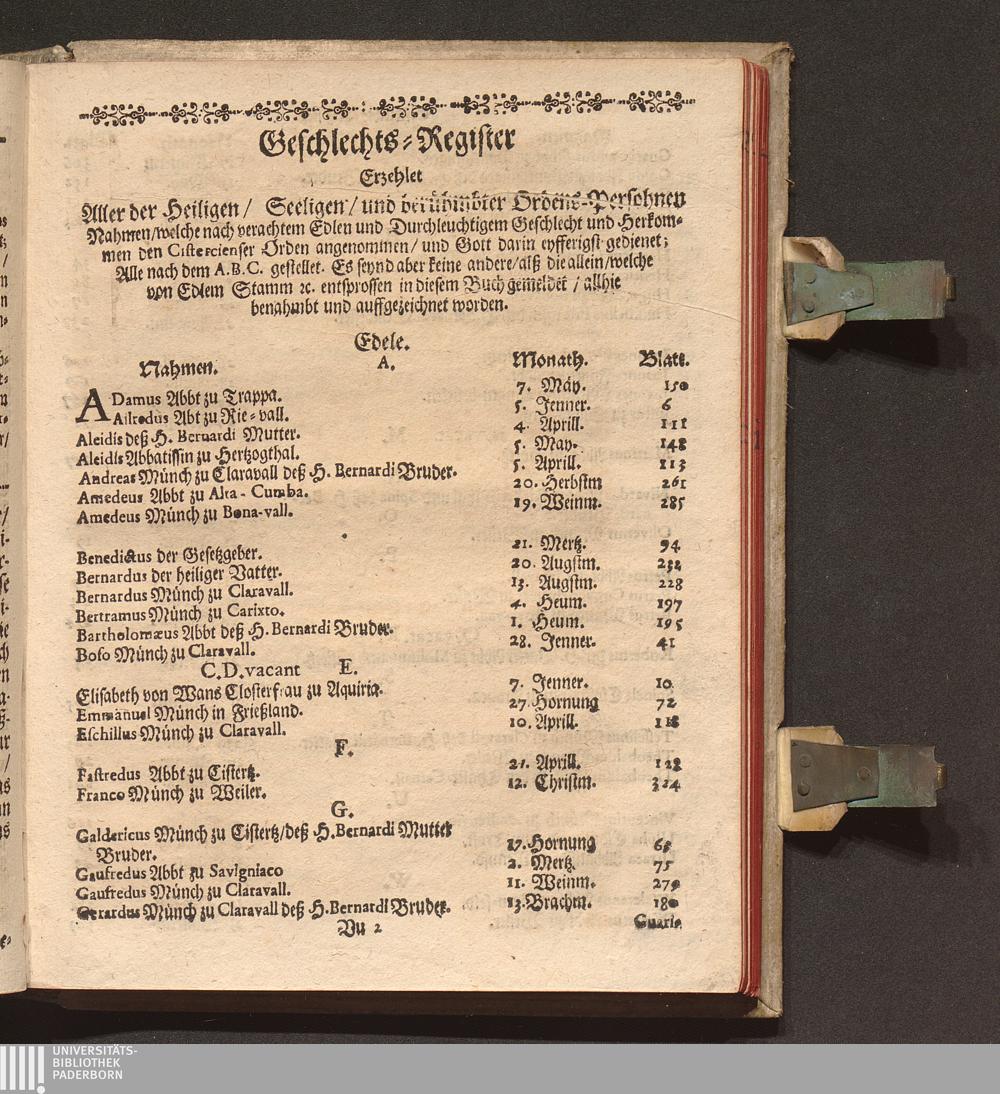Kurtze Lebens Verfassung Der Heiligen und Seeligen Auch Berühmbten Männer Deß Heiligen Cistercienser Ordens / Von dem Hochwürdig- und Hochgelehrten Herren Claudio Chalemot, der heiligen Schrifft Pariser Facultät Doctorn, und deß Closters der Seeligen Mariæ de Columba Strengerer Observantz/ und gemelten Ordens Abbten/ in Lateinischer Sprach beschrieben. Jetzo aber ... gantz fleissig in die Teutsche Sprach übersetzt Durch R. P. F. Nivardum Henrici, Deß im Rhein-gau gelegenen Cistercienser Ordens Closters Eberbachs Professum ...
