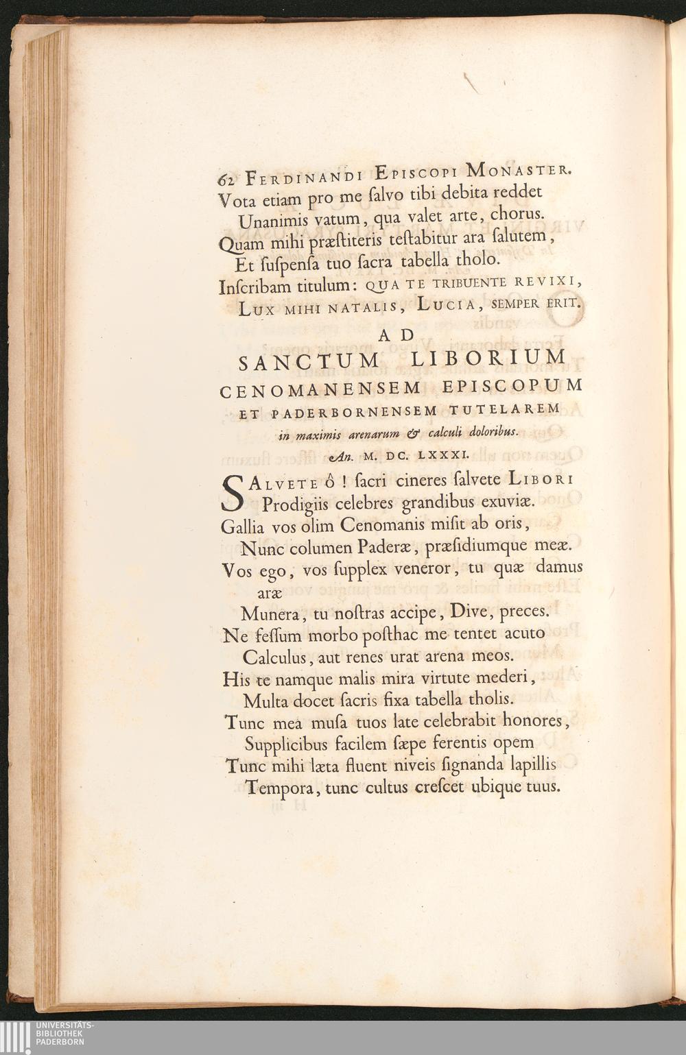 Ad Sanctum Liborium Cenomanensem Episcopum et Paderbornensem Tutelarem ...