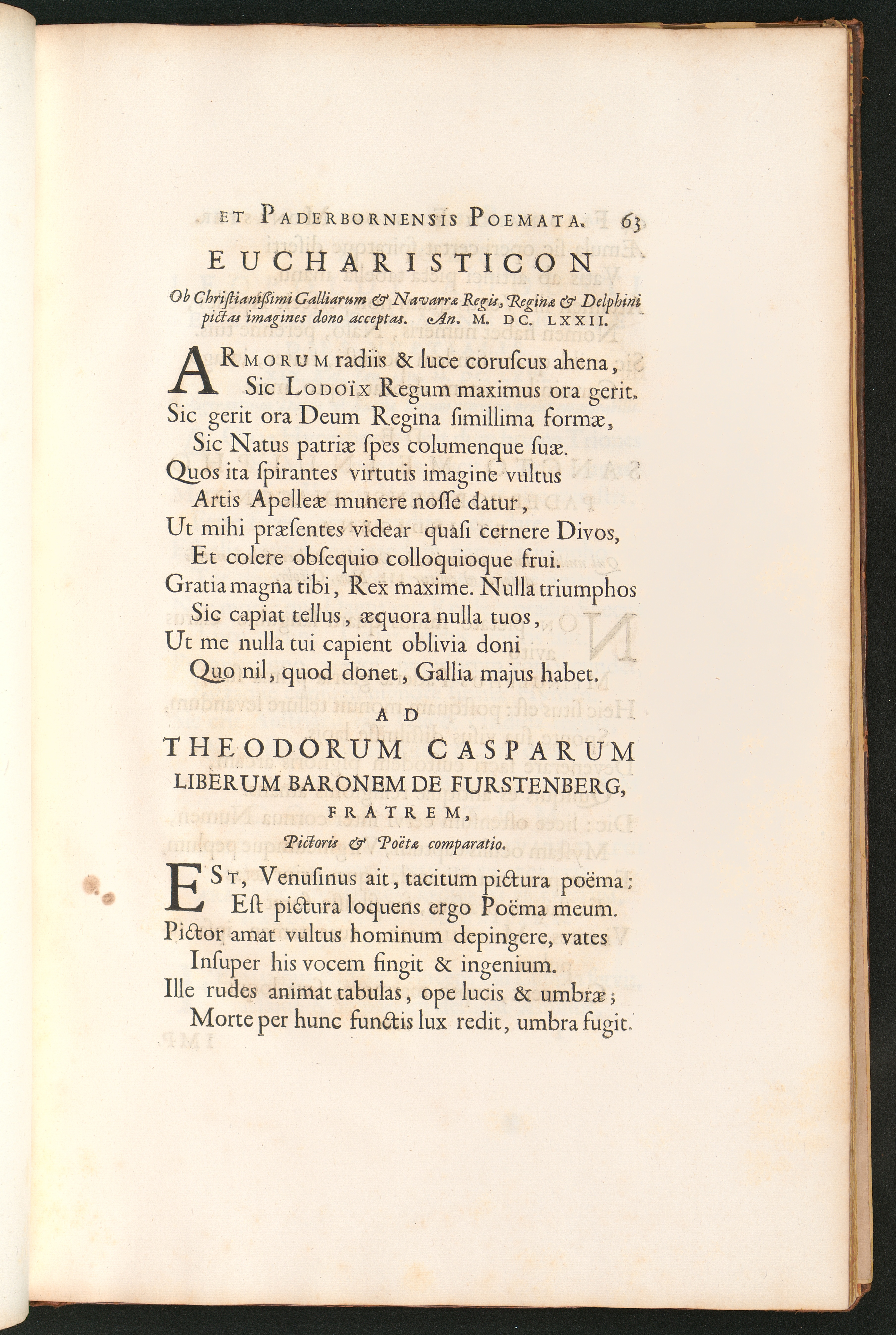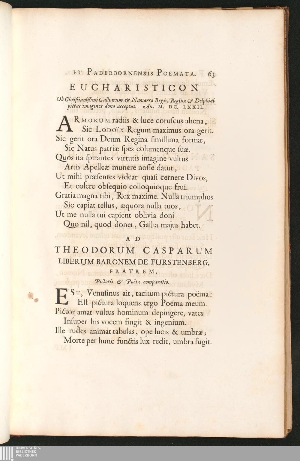 Eucharisticon ... Ad Theodorum Casparum Liberum Baronem de Furstenberg, Fratrem,[...]