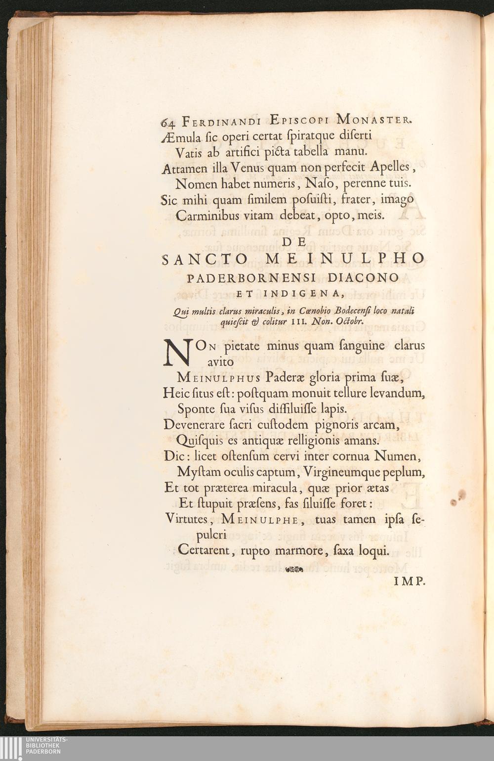 Poemata Ferdinandi Episcopi Monasteriensis Et Paderbornensis, S. R. I. Principis, Comitis Pyrmontani, Liberi Baronis De Furstenberg