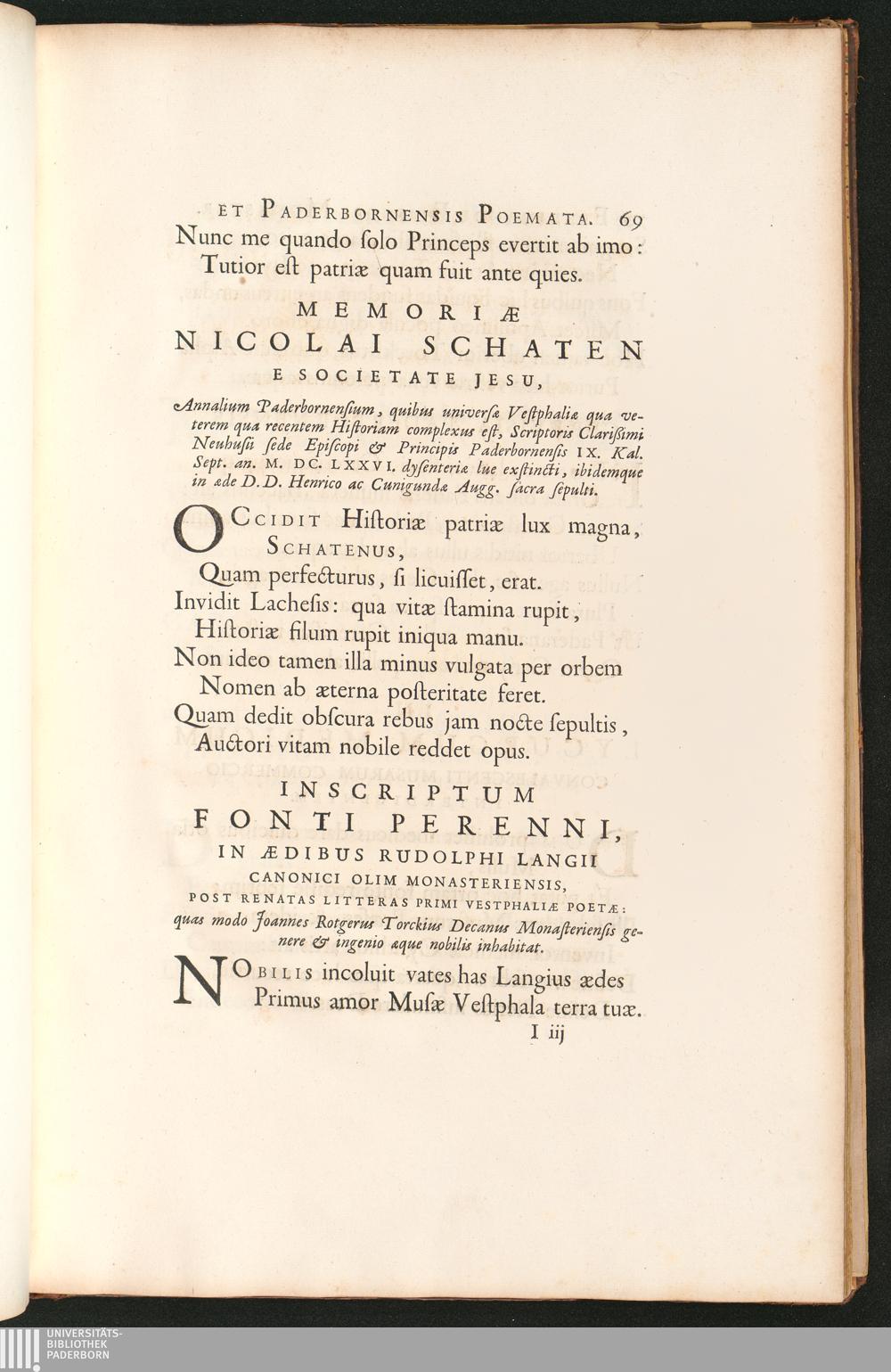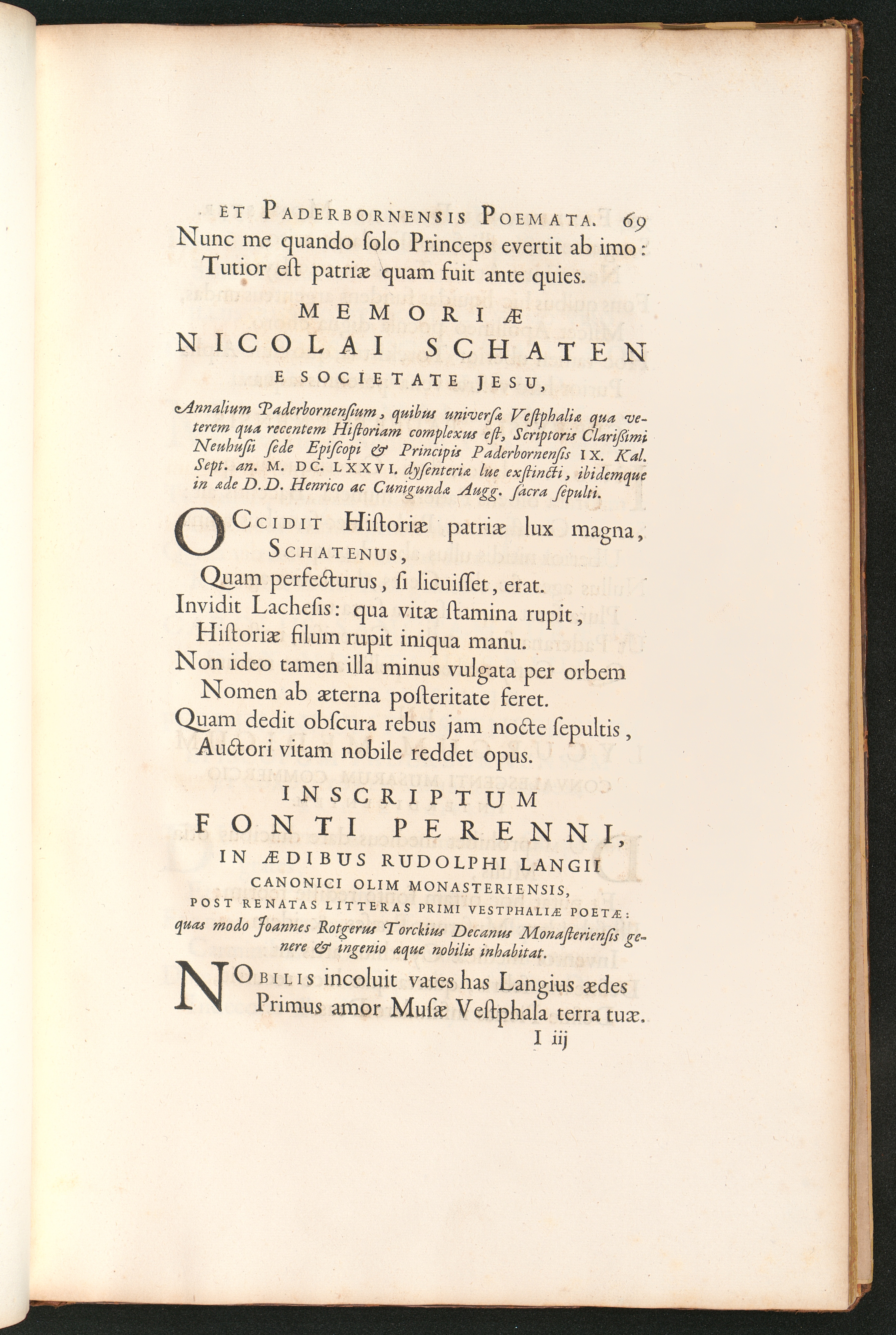 Memoriae Nicolai Schaten e Societate Jesu, ... Inscriptum Fonti Perenni, in Aedibus[...]