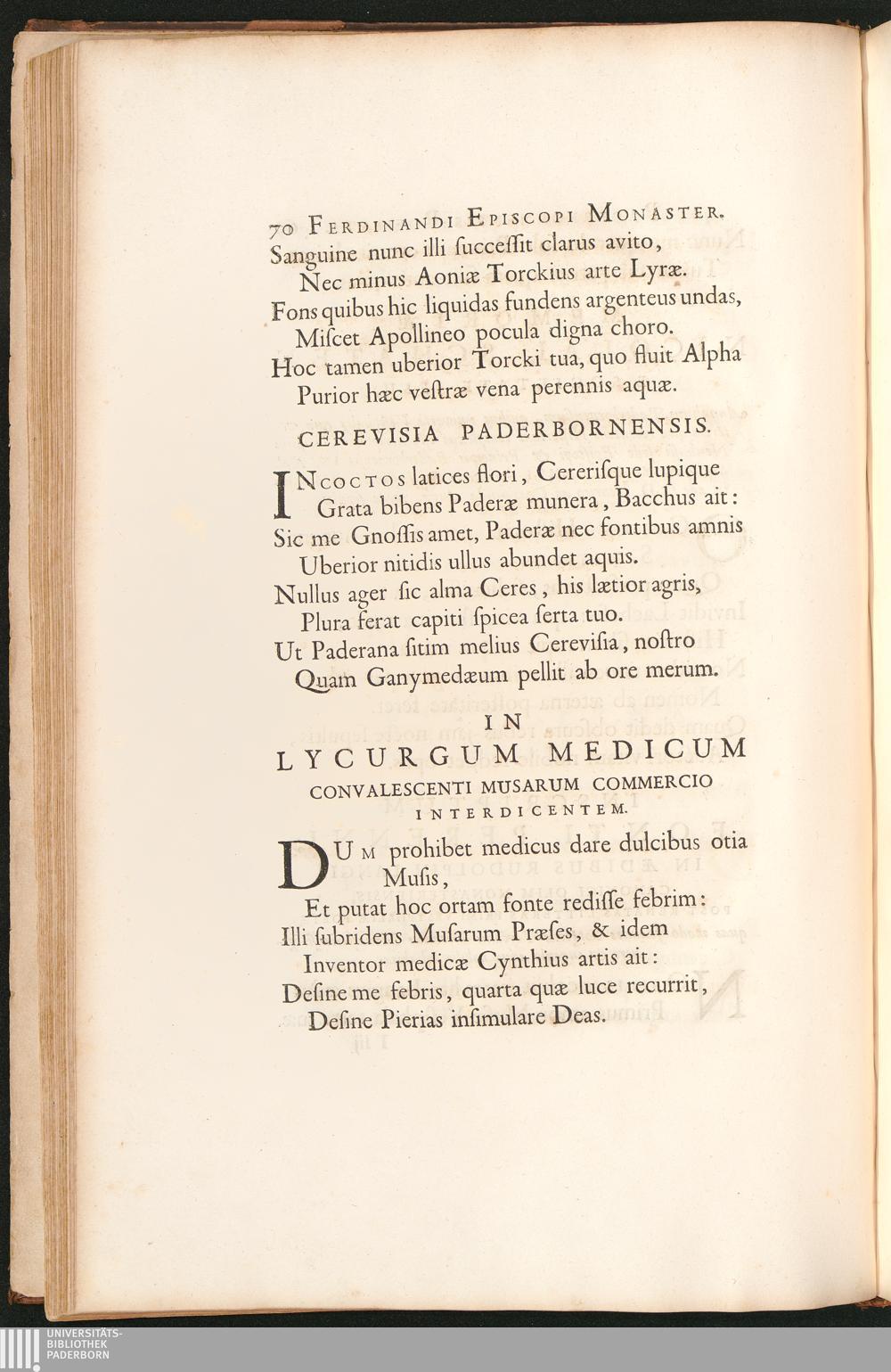Cerevisia Paderbornensis. In Lycurgum Medicum ...