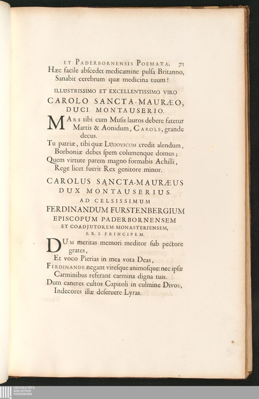Poemata Ferdinandi Episcopi Monasteriensis Et Paderbornensis, S. R. I. Principis, Comitis Pyrmontani, Liberi Baronis De Furstenberg