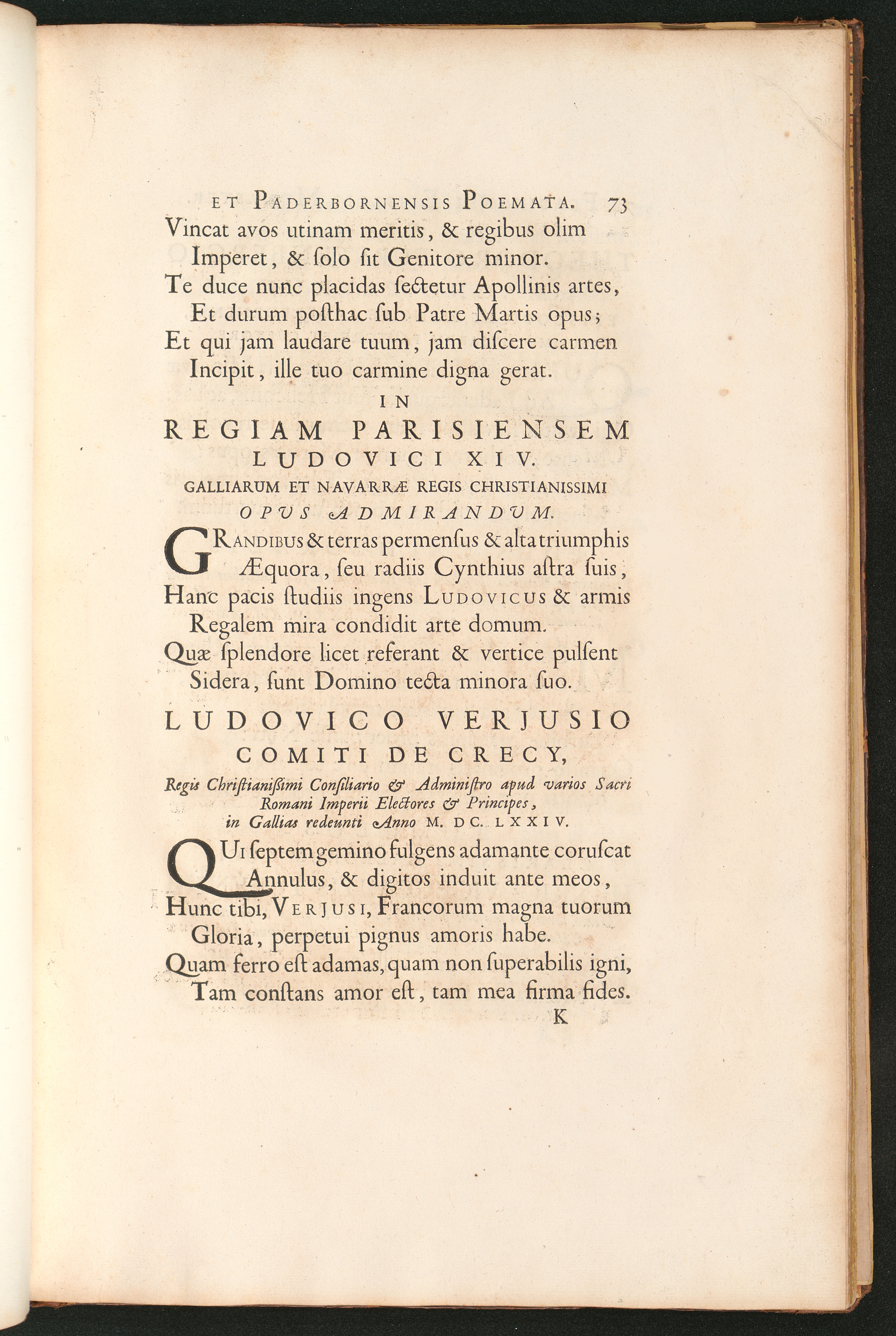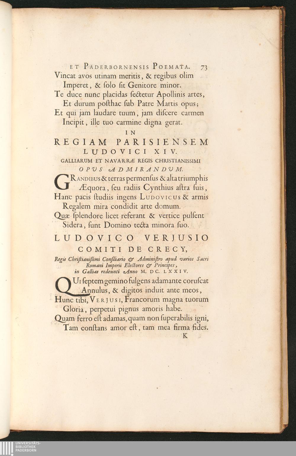 In Regiam Parisiensem Ludovici XIV. Ludovico Verjusio Comiti de Crecy, ...