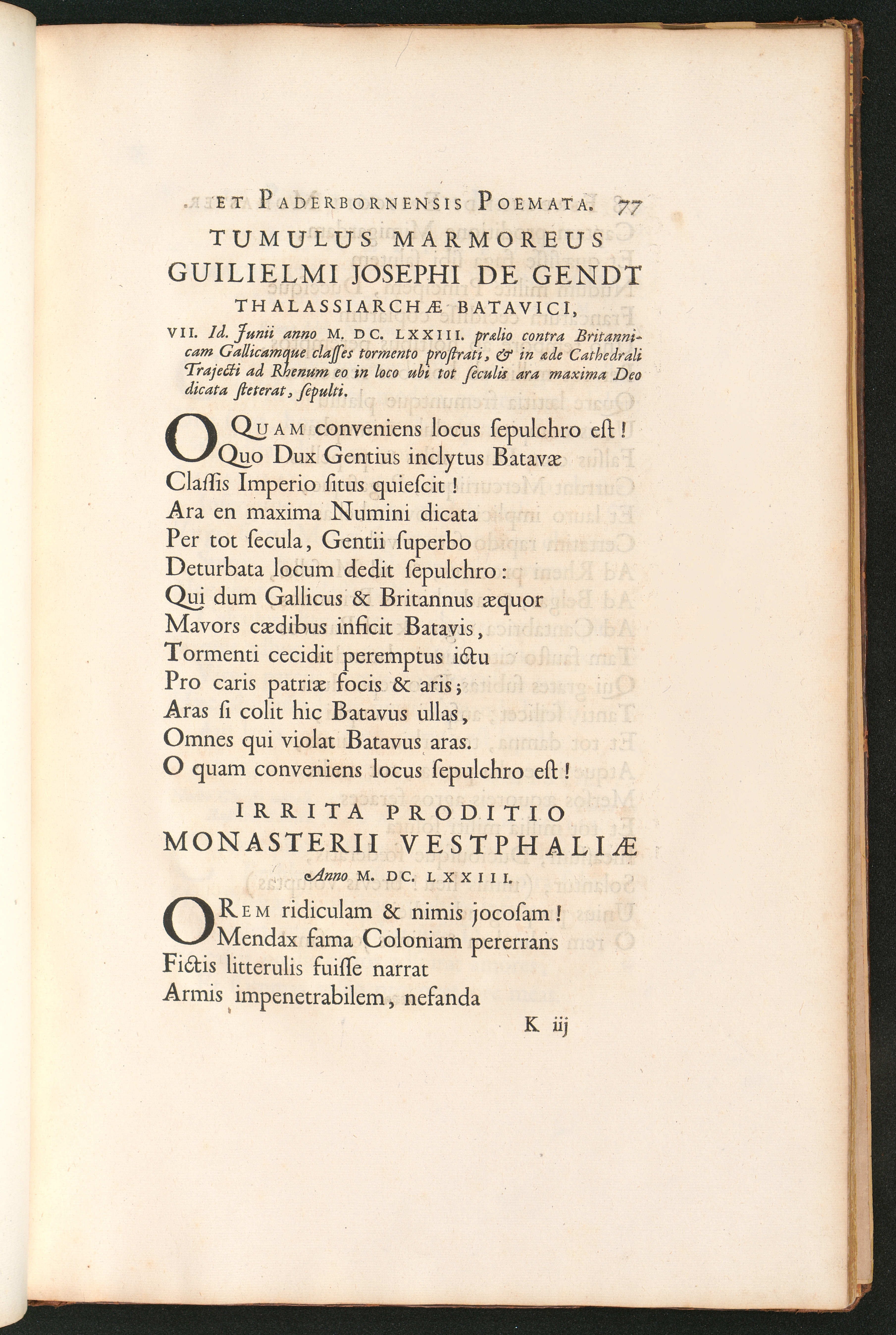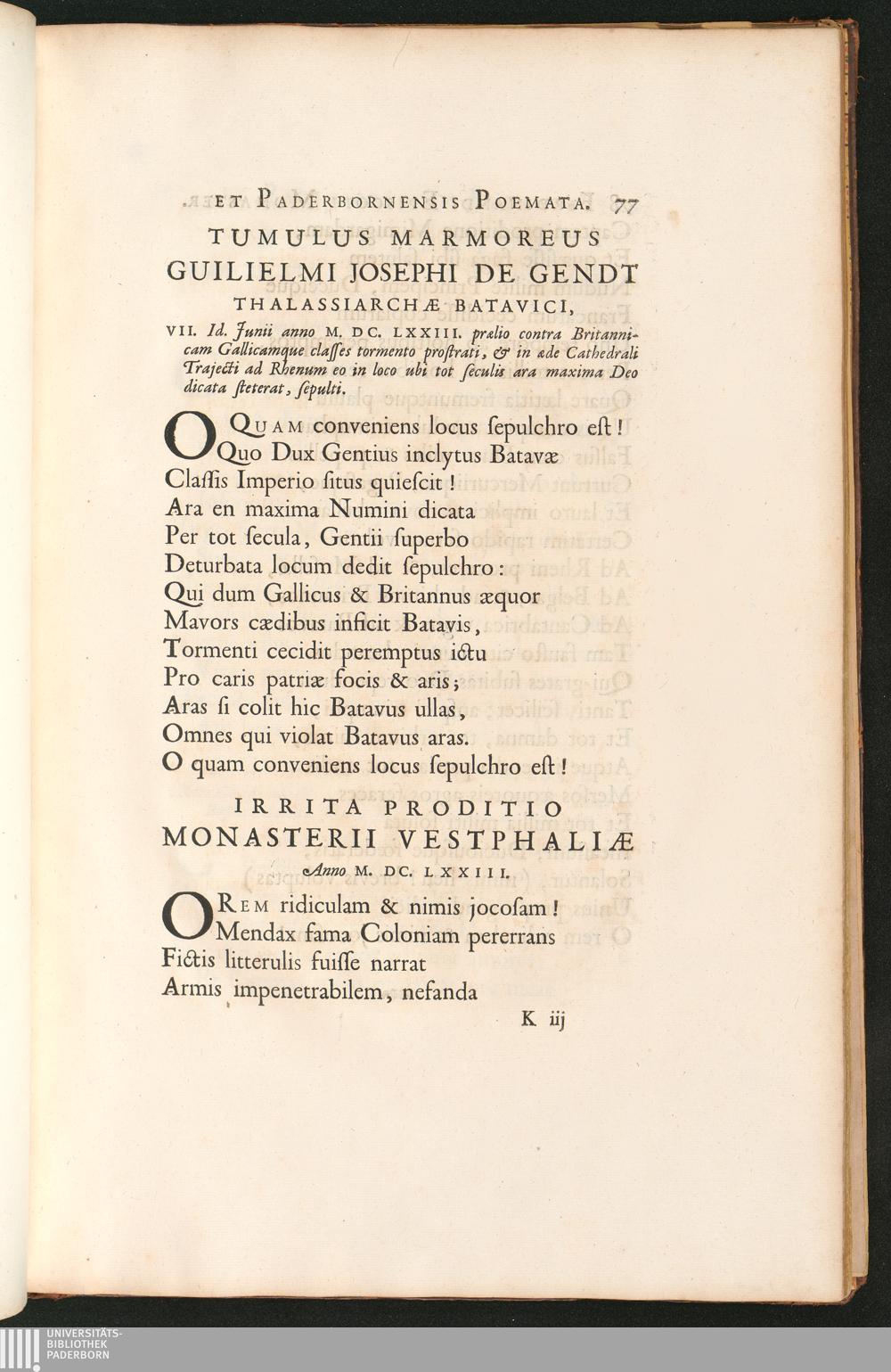 Tumulus Marmoreus Guilielmi Josephi de Gendt Thalassiarchae Batavici, ... Irrita[...]